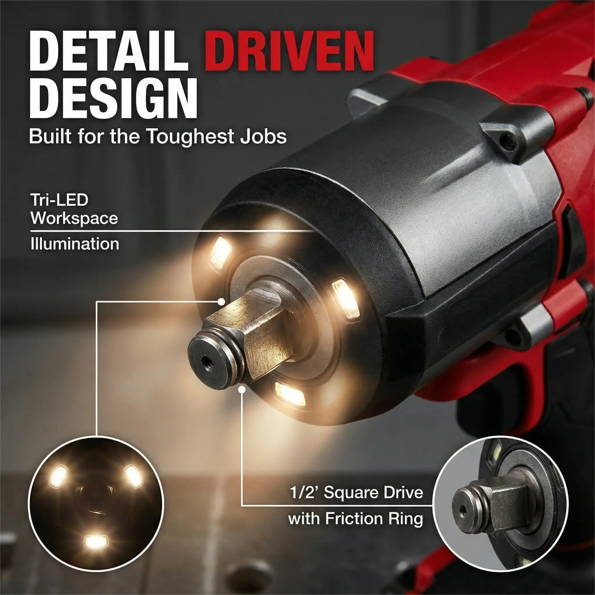 Milwaukee M18 FMTIWF12 18V 1/2 Inch Impact Wrench for Automotive Repair with 900Nm Torque