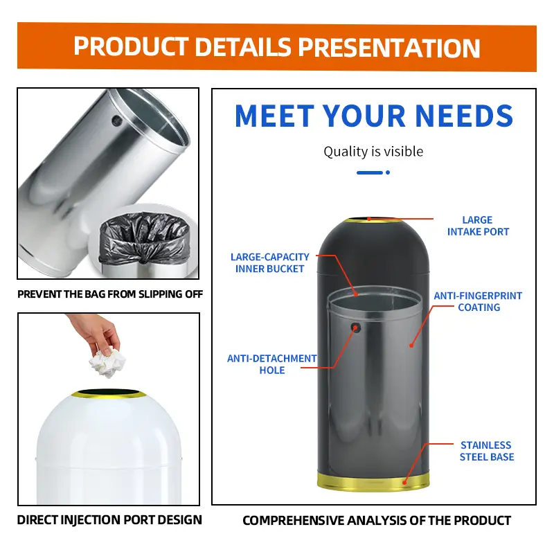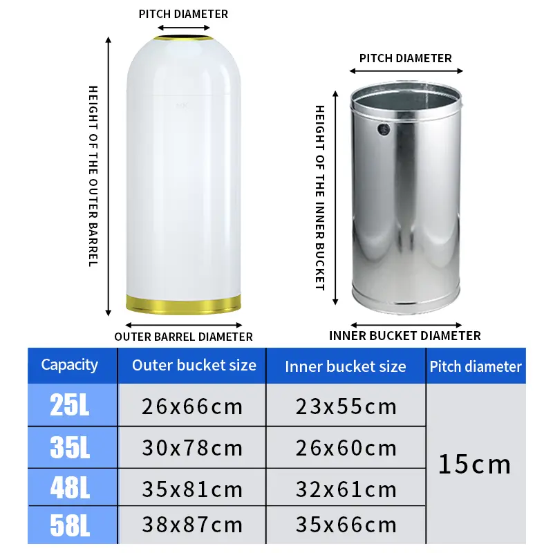 Bullet Shape Metal Trash Can Large Inner Bucket 25L 35L 48L 58L Multiple Colors Free Custom Pattern Printing for Hotels Catering Stores Shopping Malls Kitchens Commercial Household Use