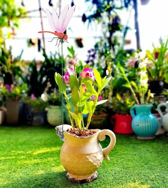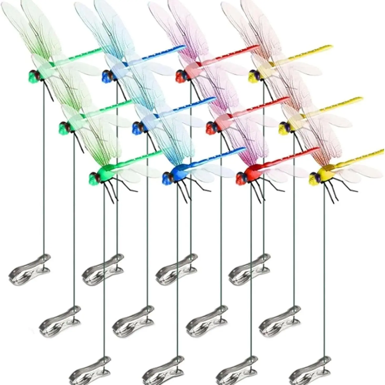 Easy Clip-On: Each dragonfly features a strong spring-loaded clip that secures to garden stakes fences poles hats or pet accessories for tool-free quick installation and reliable hold