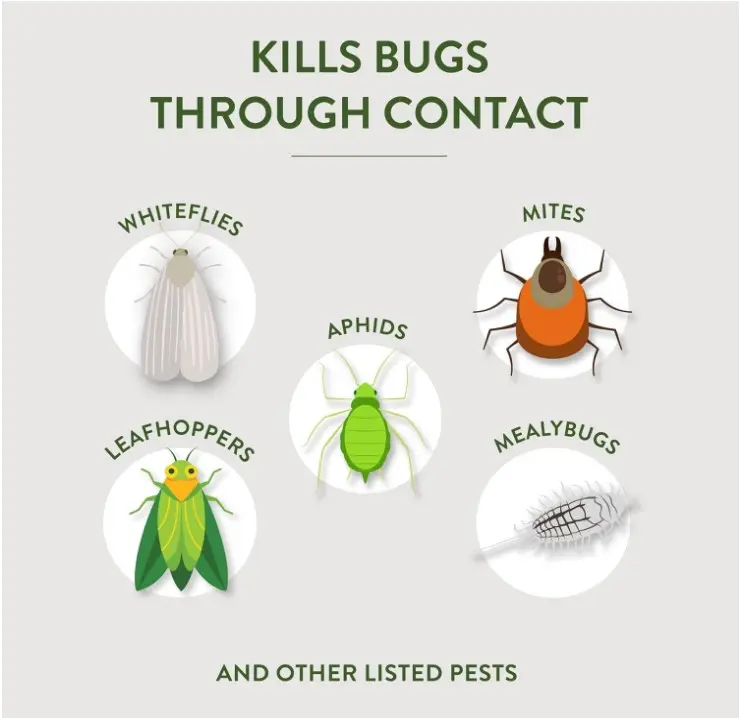·KILLS BUGS THROUGH CONTACT: Controls aphids, mealybugs, mites, leafhoppers, psyllids, scale insects, thrips, whiteflies and other listed pests.