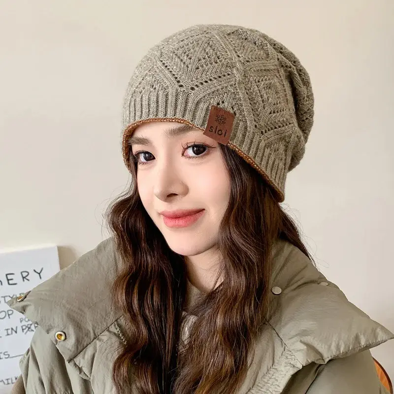 New Women Fashion Slouchy Winter Hats Various Wearing Method Reversible Beanie Hat Thick Knitted Hats