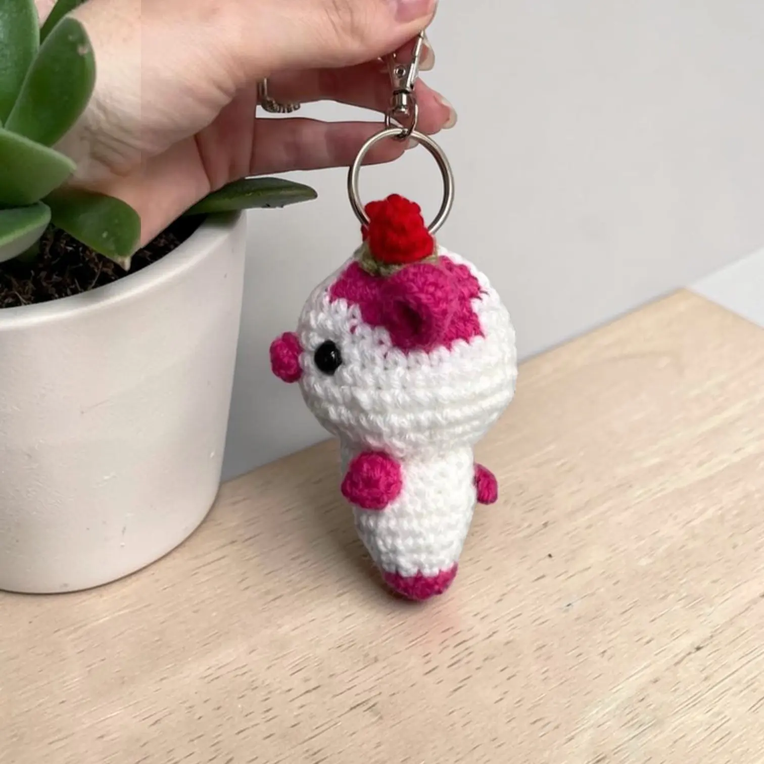 Each keychain is meticulously handmade, ensuring a unique piece for every recipient. The crochet work is detailed, making it a standout accessory. Perfect for those who appreciate handmade items. 🧶