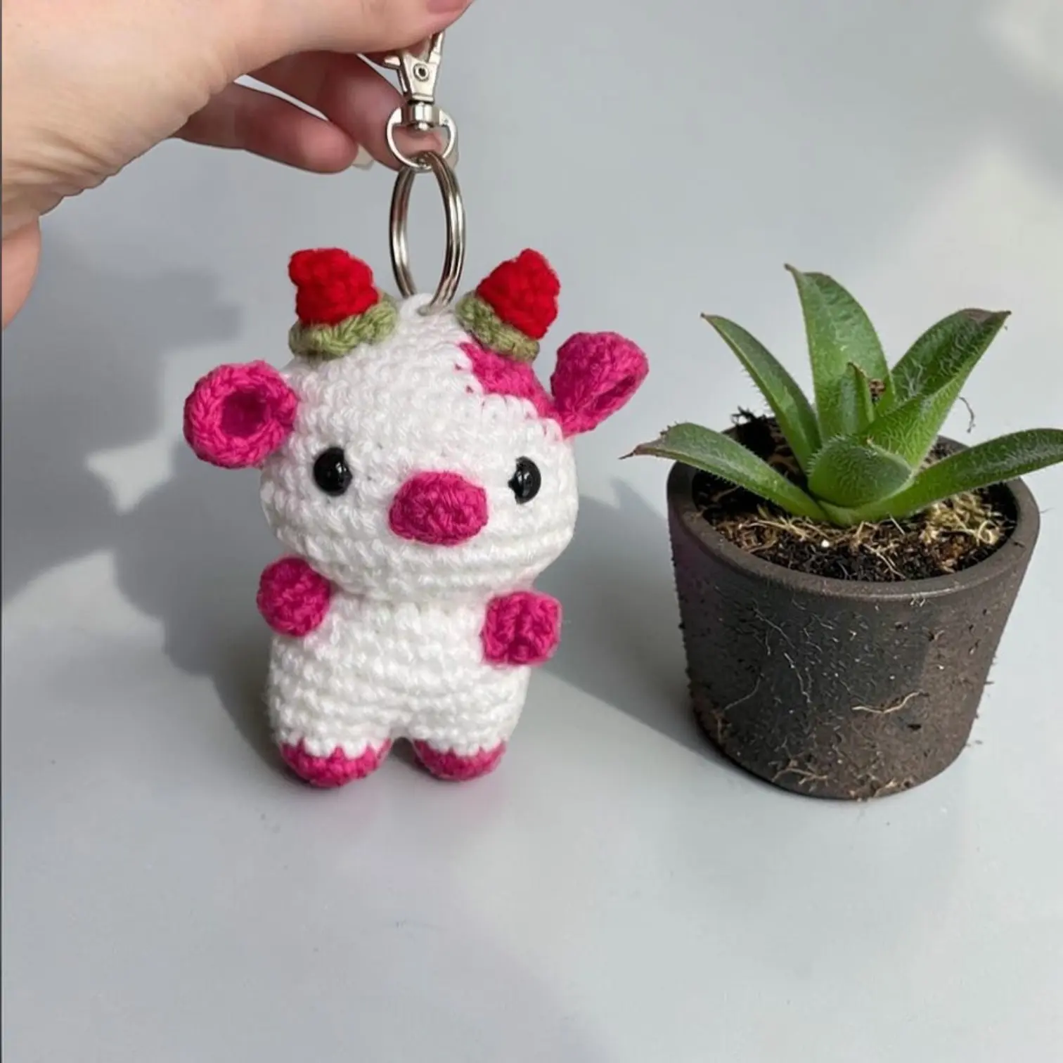 Crochet Strawberry Cow Keychain Handmade Crochet Gift For Her or Him or Mom or Dad