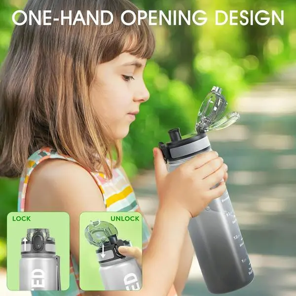 🔒 Leakproof Design: Features a flip-lock lid to prevent leaks. The flip-up mechanism allows one-handed opening with a single press. Stay hydrated without worrying about spills.