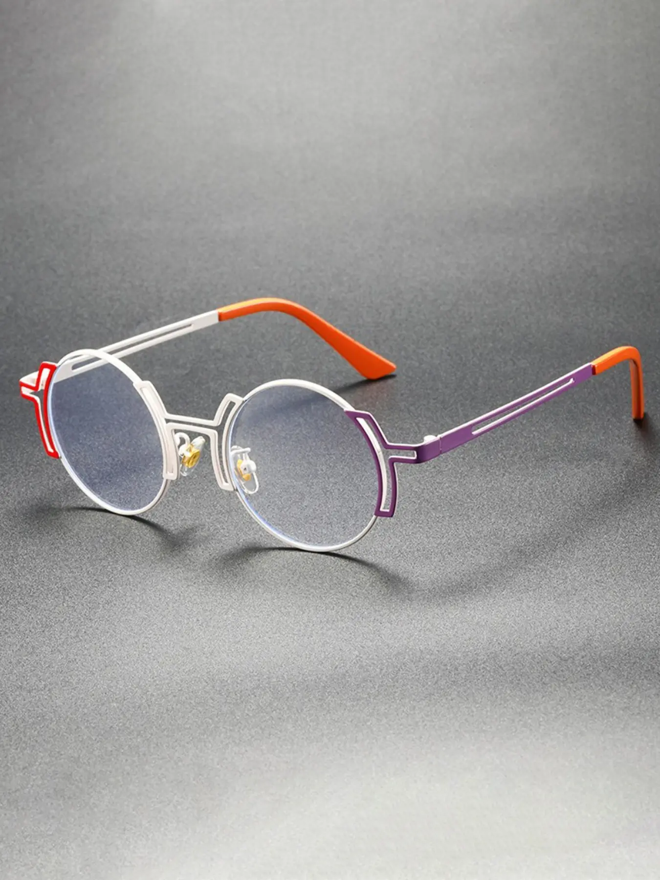 Minimalist High End Style Round Frame Glasses Cyberpunk Style Asymmetrical Contrasting Color Glasses Unisex Atmospheric Wear Glasses