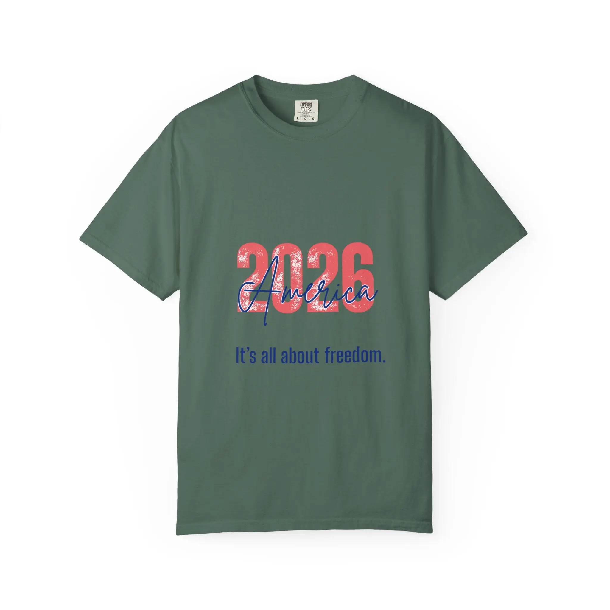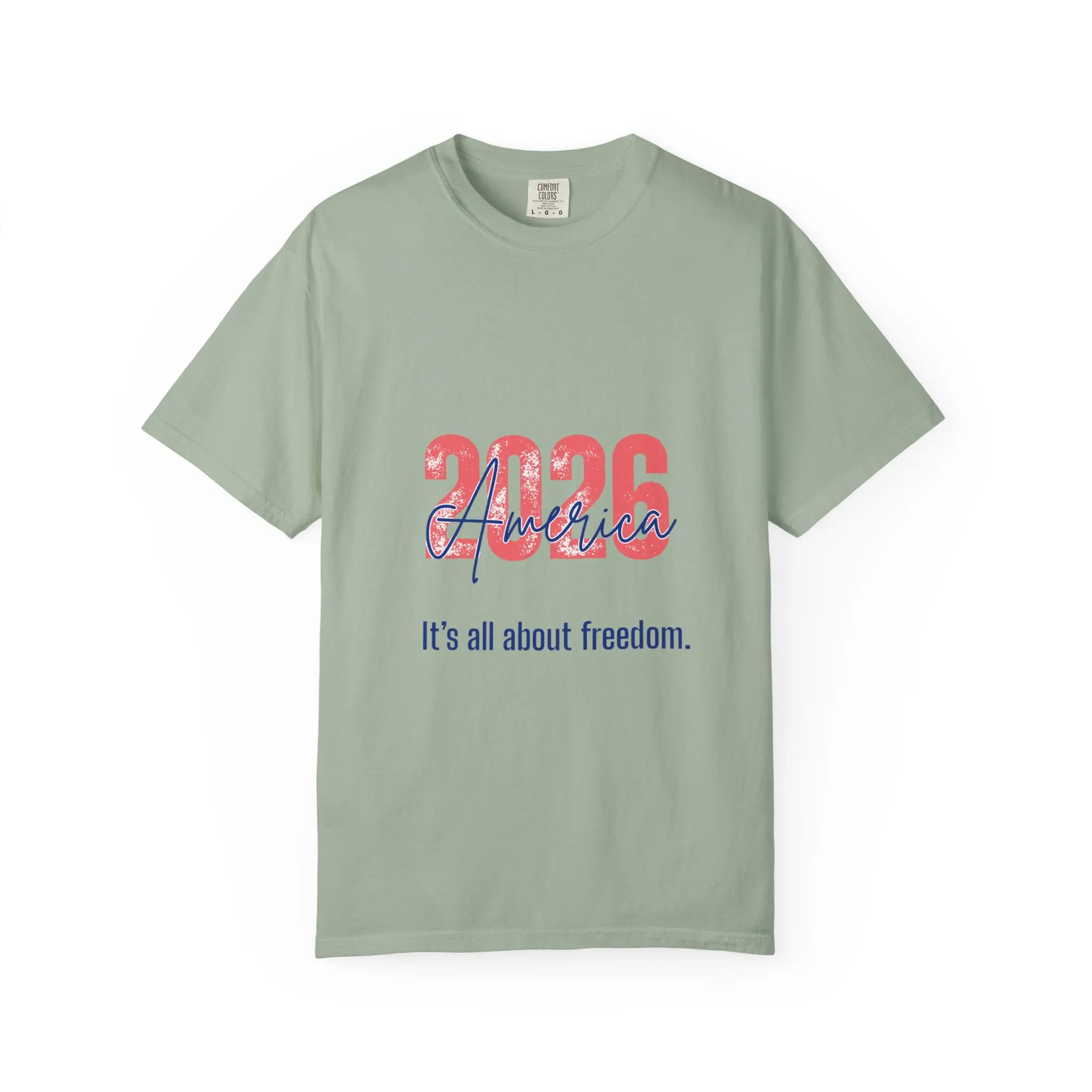 A soft, garment-dyed tee that carries a quiet, confident message. The shirt’s relaxed silhouette and heavyweight ring-spun cotton feel broken-in from the first wear, while the front graphic — bold year numerals layered with a flowing script and the subtle line “It’s all about freedom.” — evokes warm afternoons spent talking politics, planning rallies, or celebrating small victories. Wear it to community meet-ups, neighborhood block parties, or casual weekends when you want your values to speak without shouting. The muted dye and sewn-in label give it a lived-in authenticity; the durable double-needle stitching and tubular knit mean it will keep its shape and color through many washes and seasons.