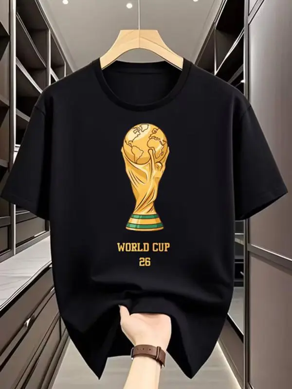 Vintage-inspired men’s short-sleeve T-shirt made from soft 100% cotton knit fabric, featuring a 2026 FIFA World Cup USA–Canada–Mexico host 2D print, brimming with ’90s retro sports and soccer fan vibes.