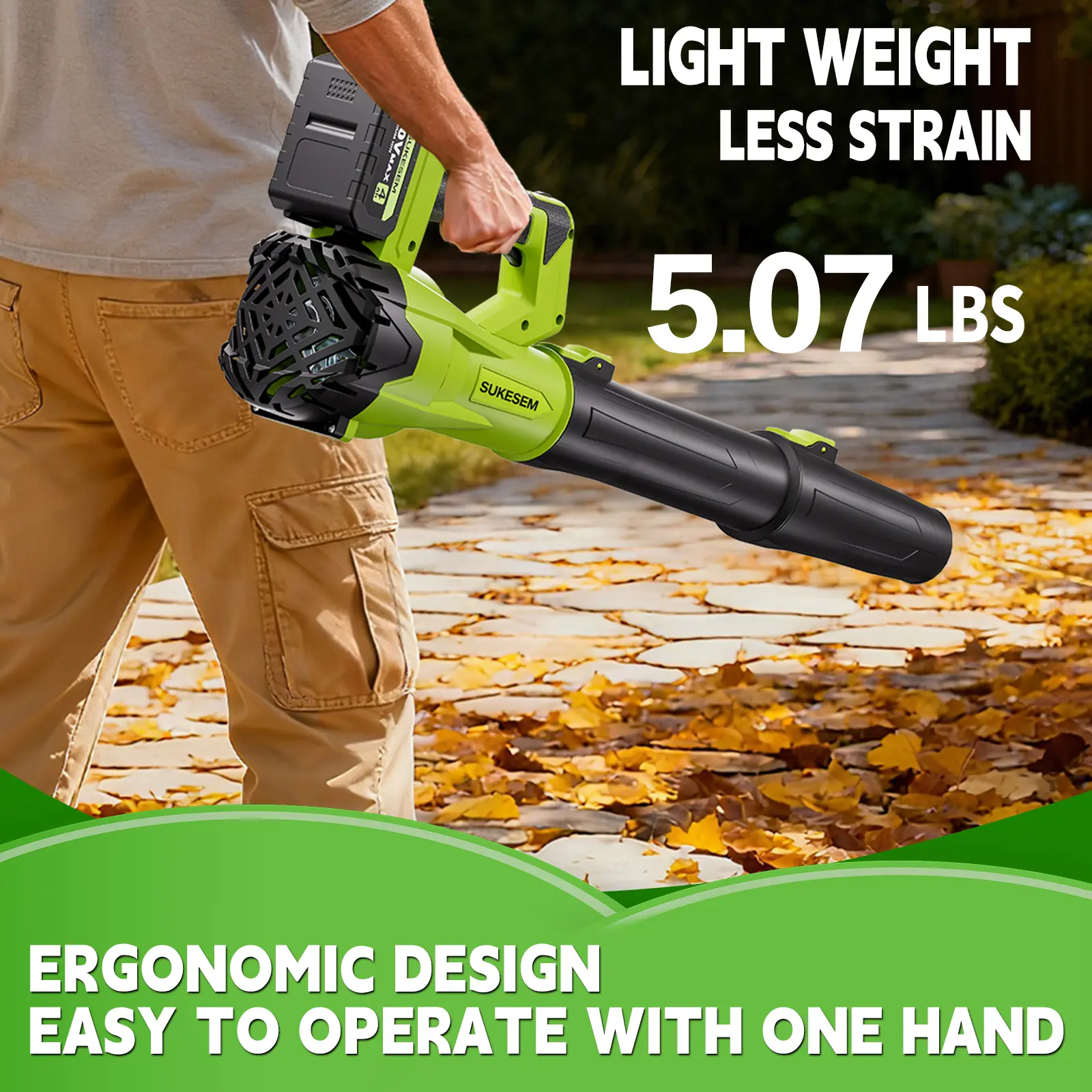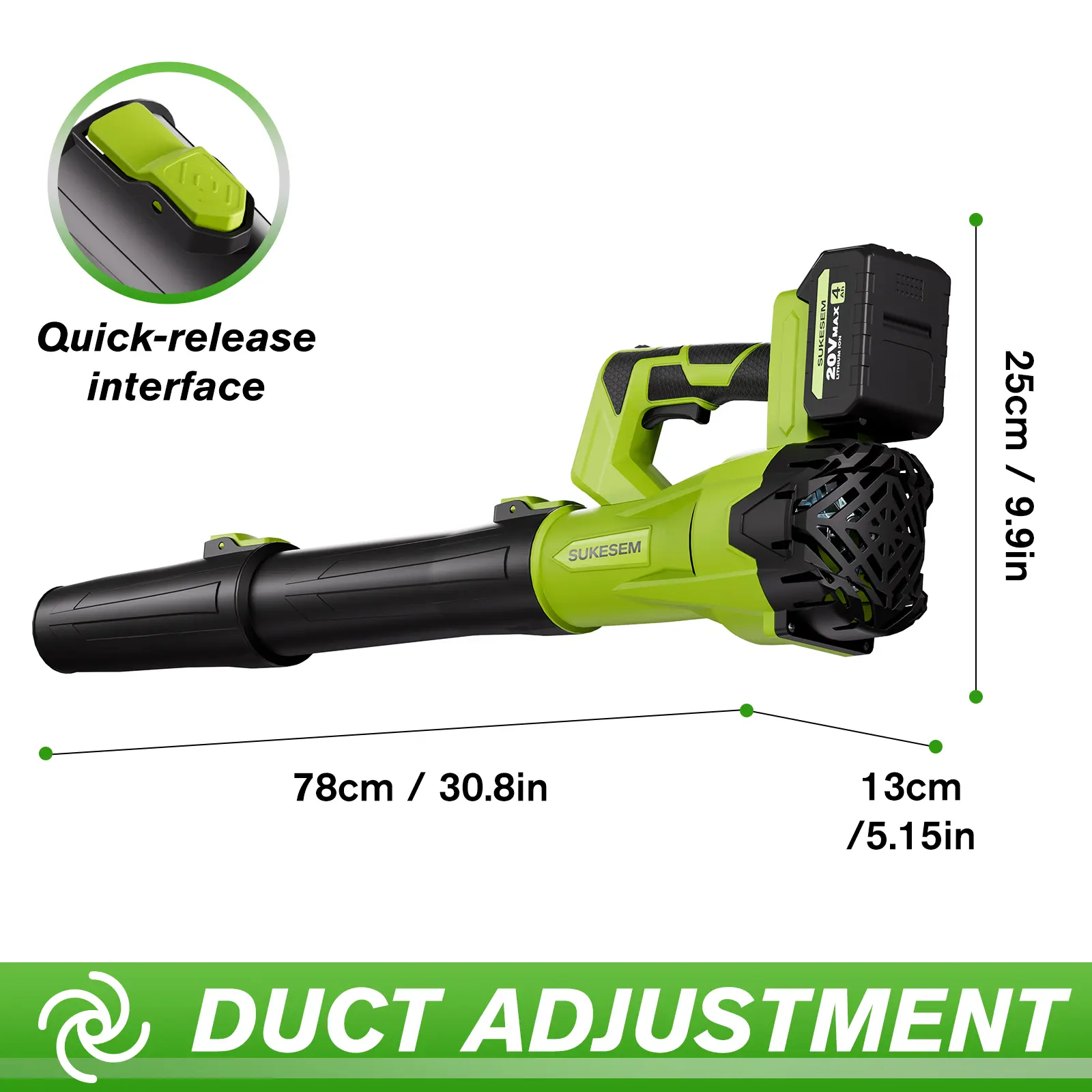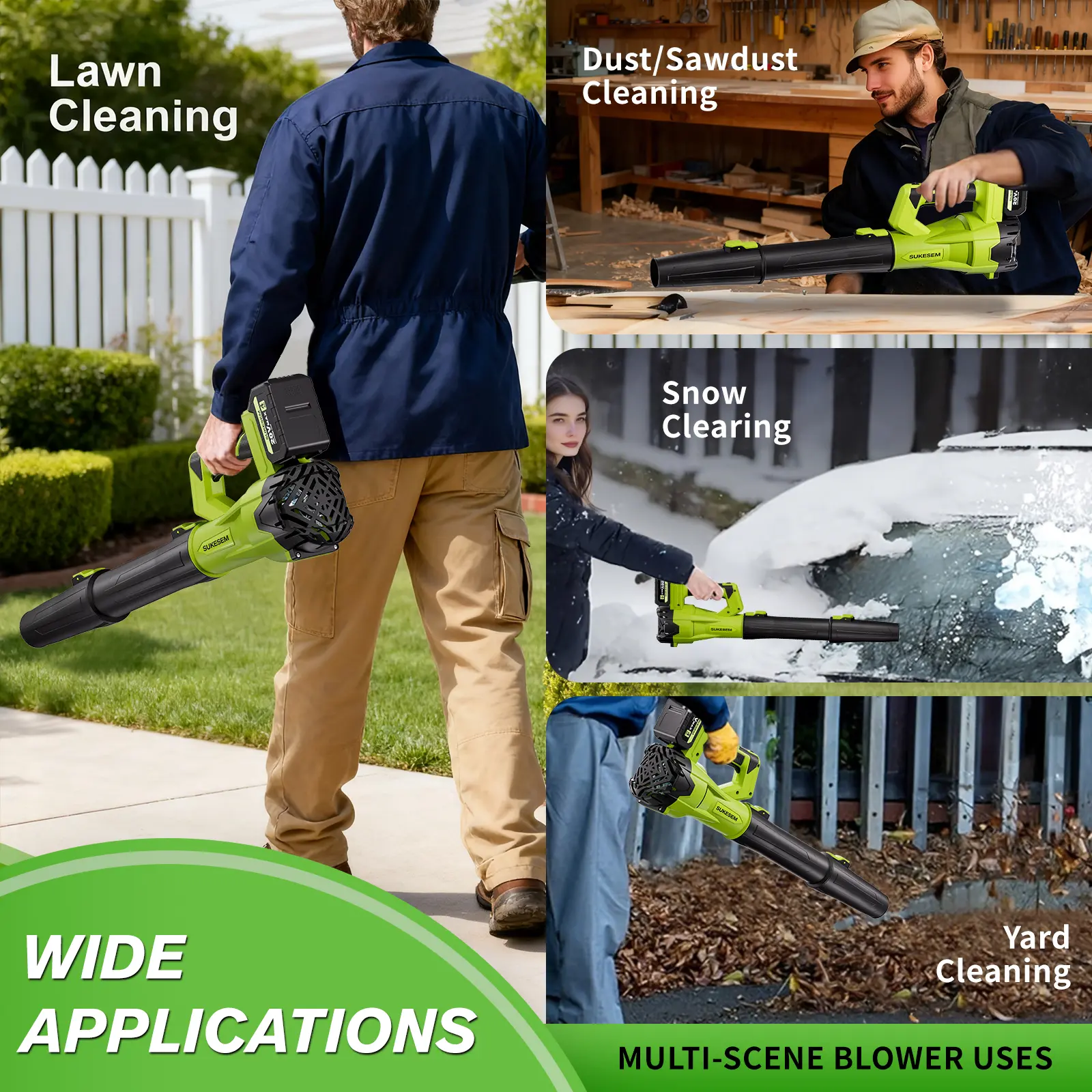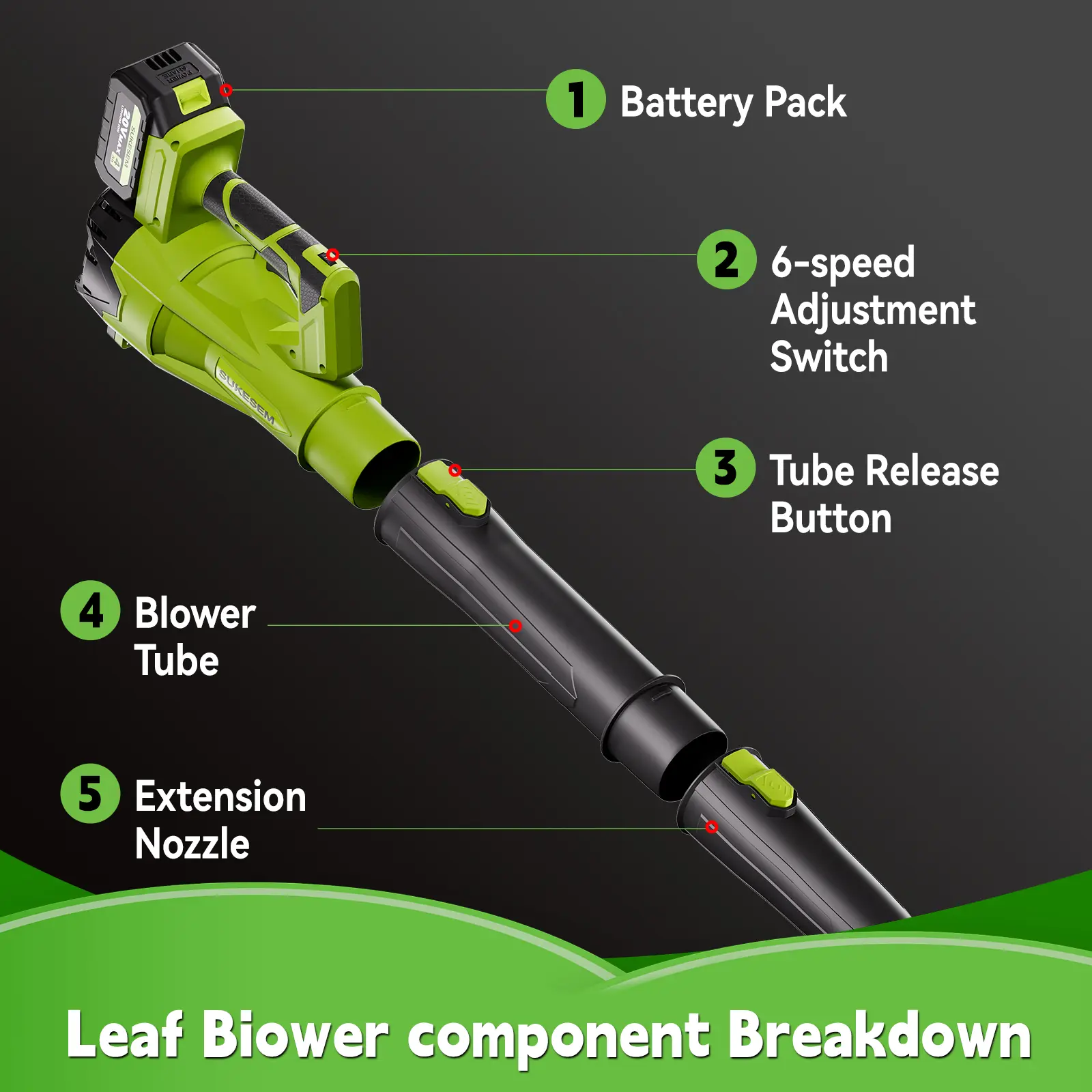 High power wireless leaf blower, equipped with 4.0Ah battery, 6-speed adjustable and extended nozzle, anti slip handle, lightweight design, suitable for lawn care and yard cleaning