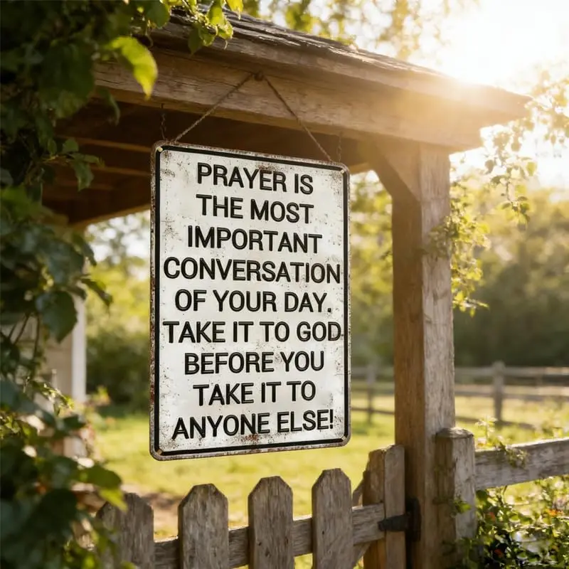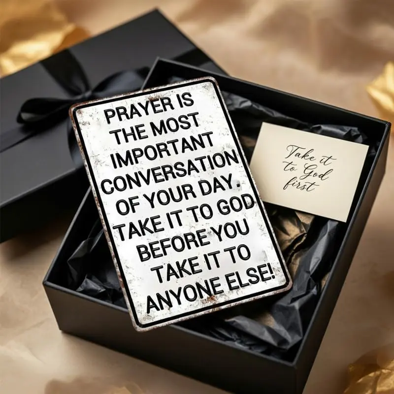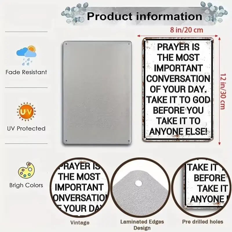 ✨ Elevate your space with this vintage aluminum tin sign. Perfect for home, church, prayer room, or office. This 8x12 inch sign features a timeless design, making it a meaningful addition to any setting. Ideal for those who value prayer as a daily conversation.