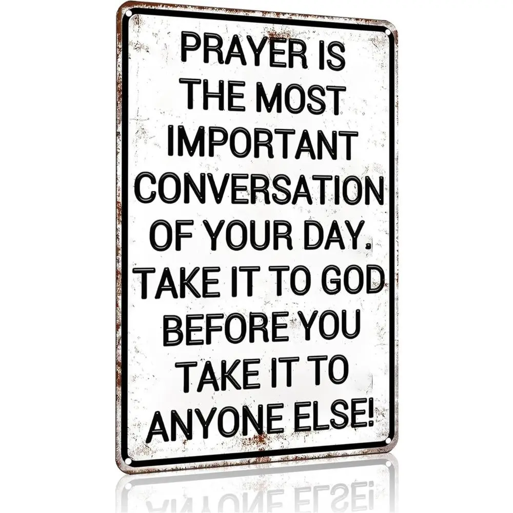 Christian Gifts for Men Women Prayer Is The Most Important Conversation of Your Day Vintage Aluminum Tin Signs Religious Metal Wall Art for Home Church Prayer Room Office Chapel Decor 8x12 Inch