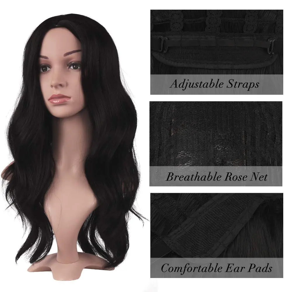 Long Black Wavy Wig Natural Everyday Style Soft Big Waves Full Volume Hair For Women 26in Comfortable Versatile Appearance 100% High Temperature Fiber Adjustable Cap Size 21-22inch
