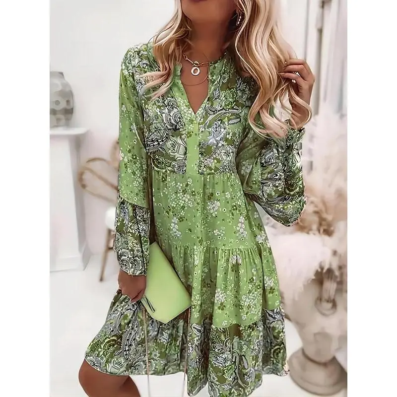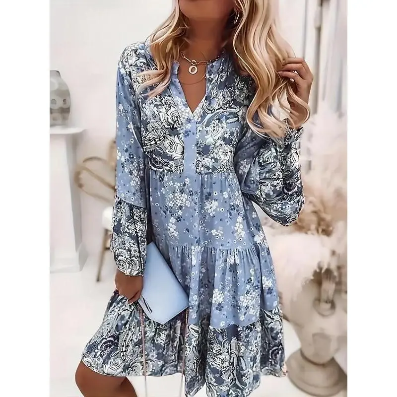 Women's Ditsy Floral Print Patchwork Tiered Layer Vintage Smock Dress, Boho Flounce Sleeve Short Dress for Daily Wear, Ladies Dress for Spring & Fall mid twenties outfits