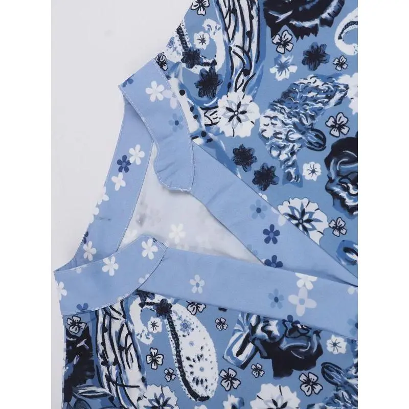 Tanming Women's Patchwork Dual Pocket Jumpsuit Loose Floral Print Bohemian Wide Leg Bib Overall Springfresh