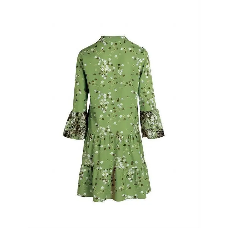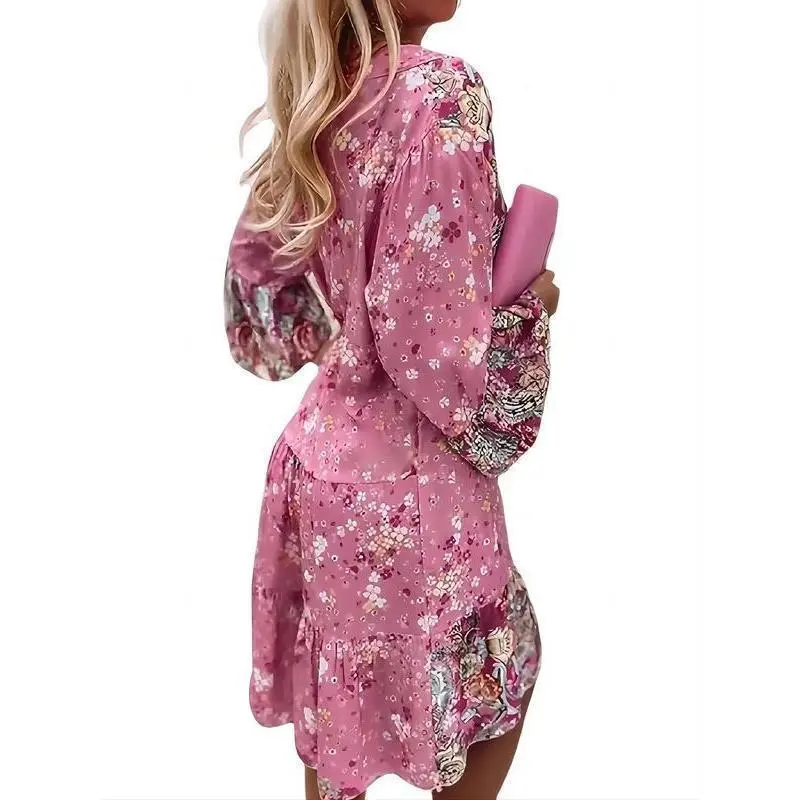 spring and summer digital positioning printing long sleeve long collar dress long dress