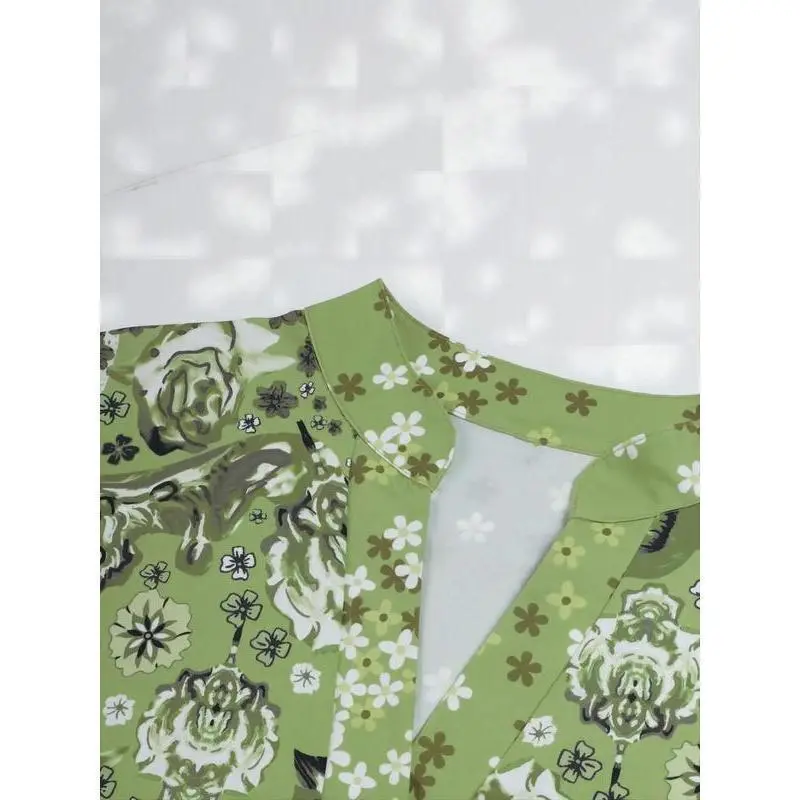 Dokotoo Women's Dress Short Sleeve Print Summer Casual V-Neck Mini Dress Vacation Set Sweet Floral Cotton Puff Sleeve Mini Dress