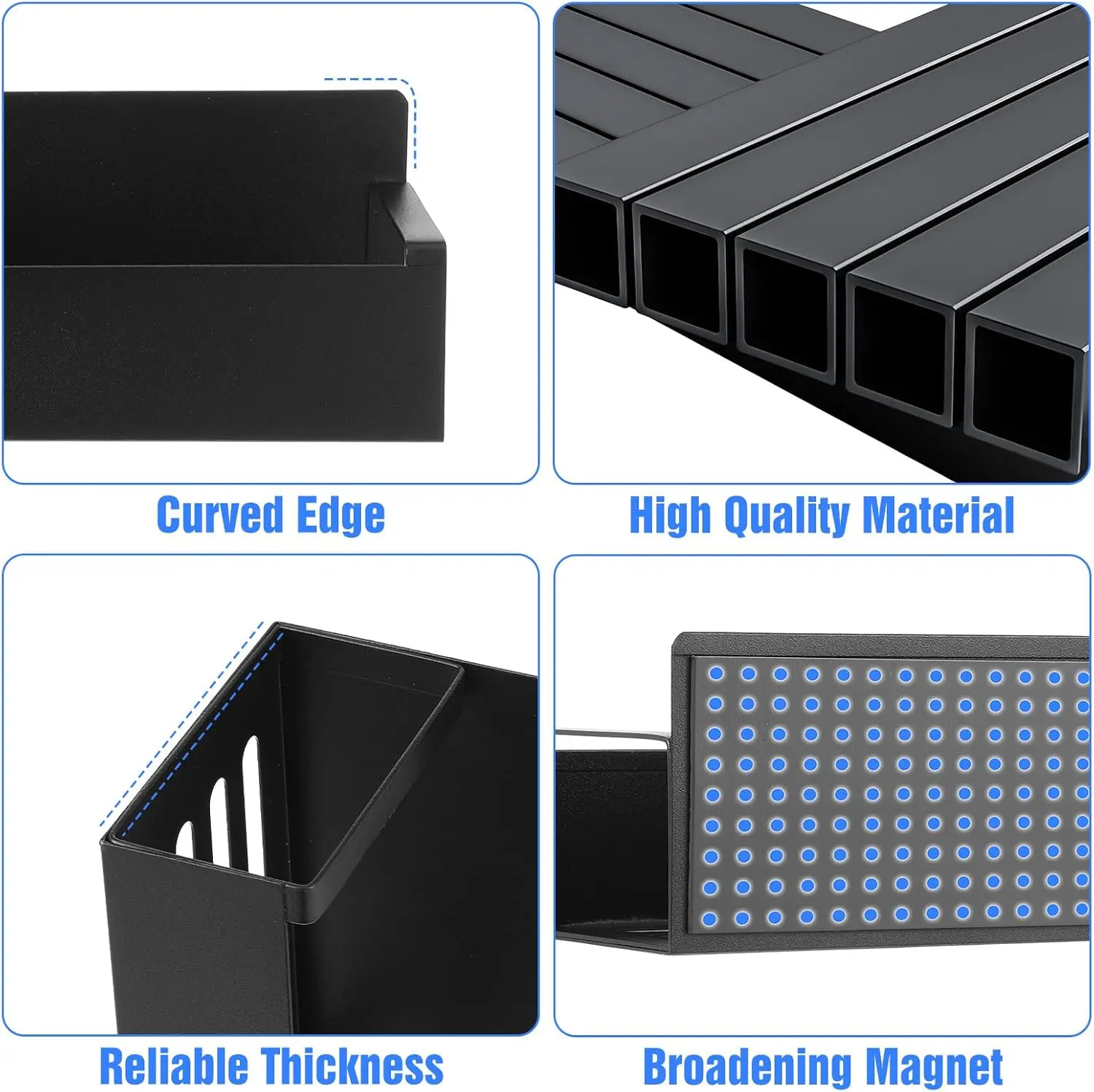 Super Strong Magnetic Properties: This magnet shelf for fridge features a 2mm/0.08-inch thickened magnetic strip for superior adhesion, making it ideal for use as a hanging bookshelf. It can hold up to 12 pounds (5.5 kg) without falling and is sturdy and durable. A front stop bar prevents items from falling off the bookshelf.