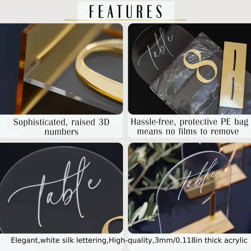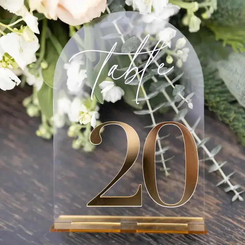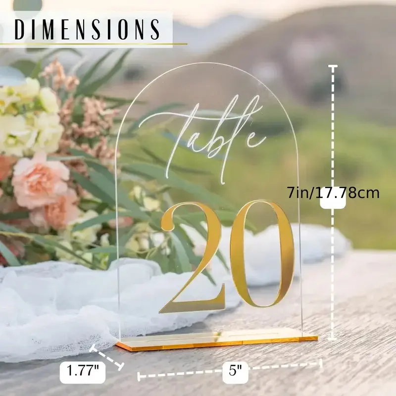 Elegant Gold Arch Wedding Table Numbers 1-20 5.5 X 7\" Clear Acrylic Sign Holder for Reception Anniversary & Party Events