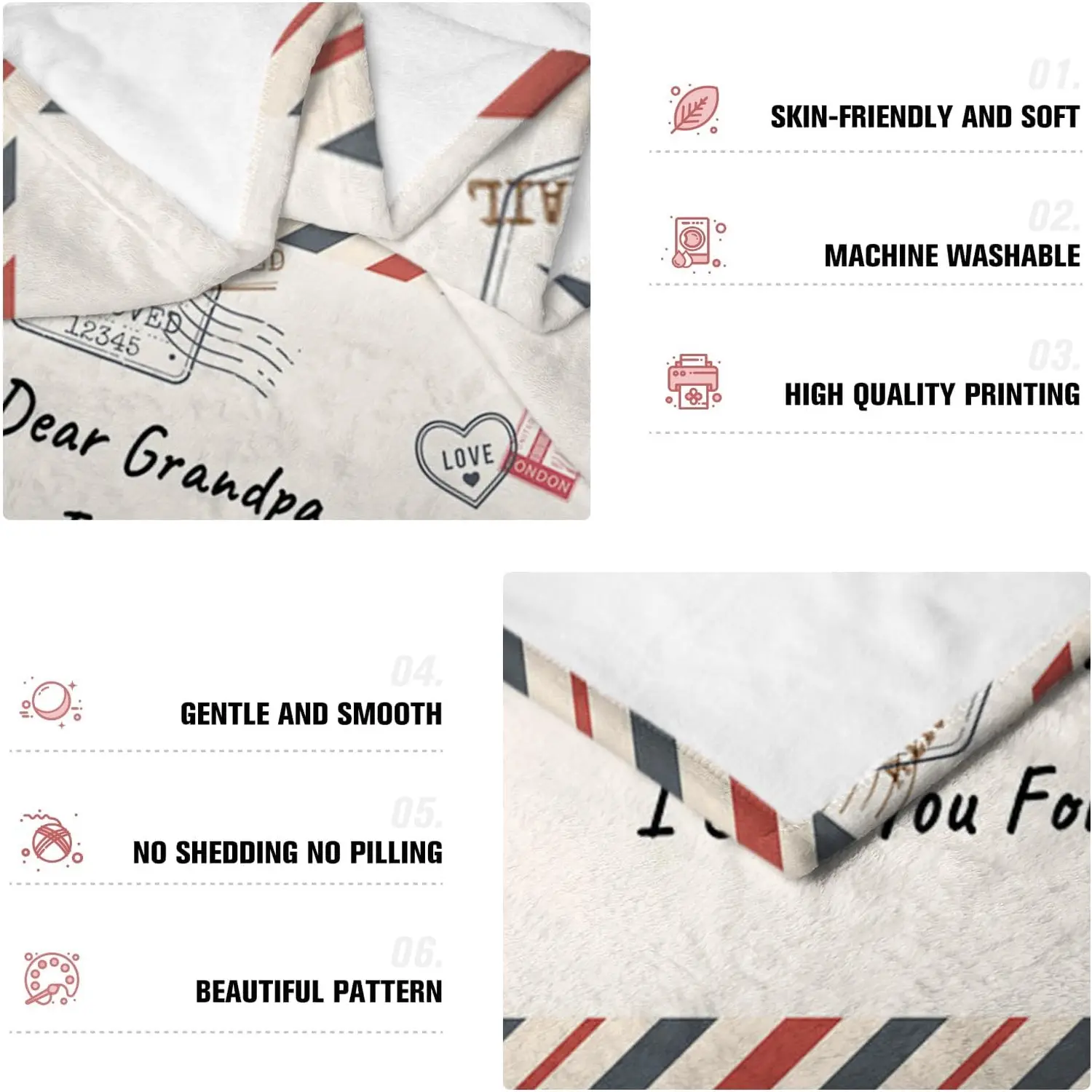Grandpa Fathers Day Birthday Gift, Fathers Day Birthday Gifts for Grandpa from Grandkids, Best Great Grandpas Gifts, Soft Letter Throw Blanket for couch60 x50, Printed on One Side with a Plain White Back, Halloween Thanksgiving Christmas Gift