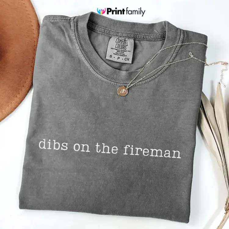 5. Comfort Colors Dibs On The Fireman Shirt, Firefighter Wife Shirt, Firefighter Girlfriend Tshirt, Fire Chief Wife Gifts, Fireman Wife Tee - Printfamily