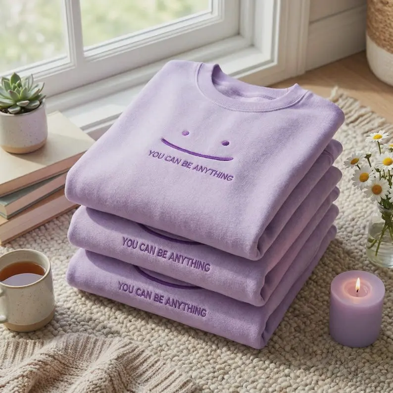 [SALE 50%] Embroidered You Can Be Anything Smile Sweatshirt, Inspirational Quote Crewneck, Positive Affirmation Sweater, Cute Cozy Pullover Gift