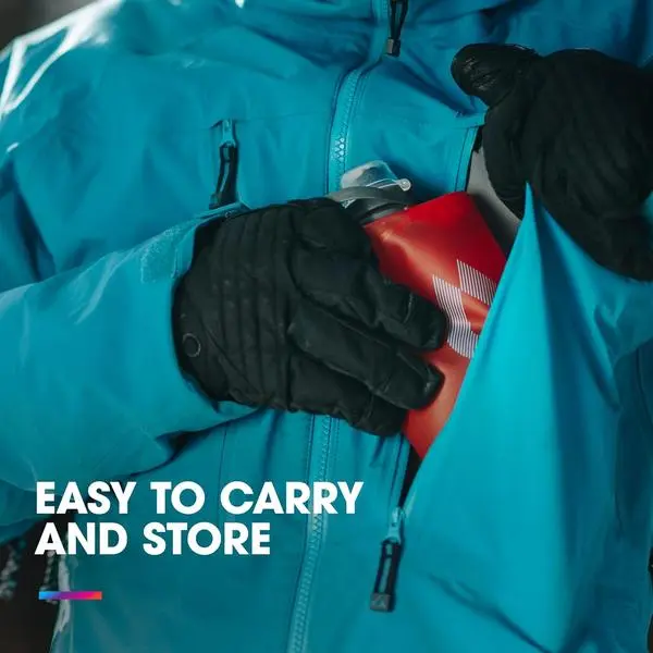 Collapsible and space-saving, this bottle flattens and rolls when empty, fitting into ski jackets, bike jerseys, or small packs. Perfect as an emergency backup during outdoor adventures or travel. Choose from 350ml, 500ml, or 1L sizes.
