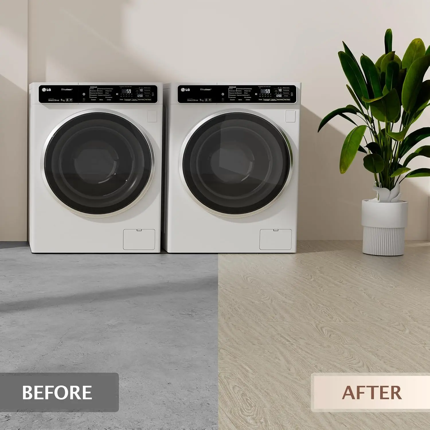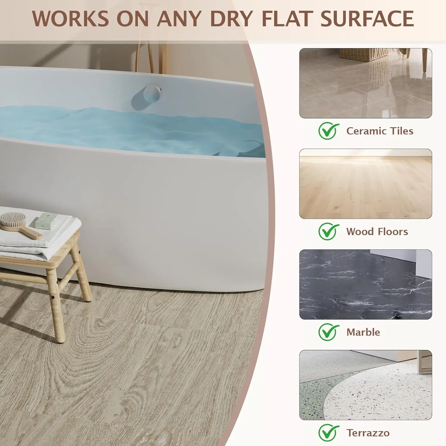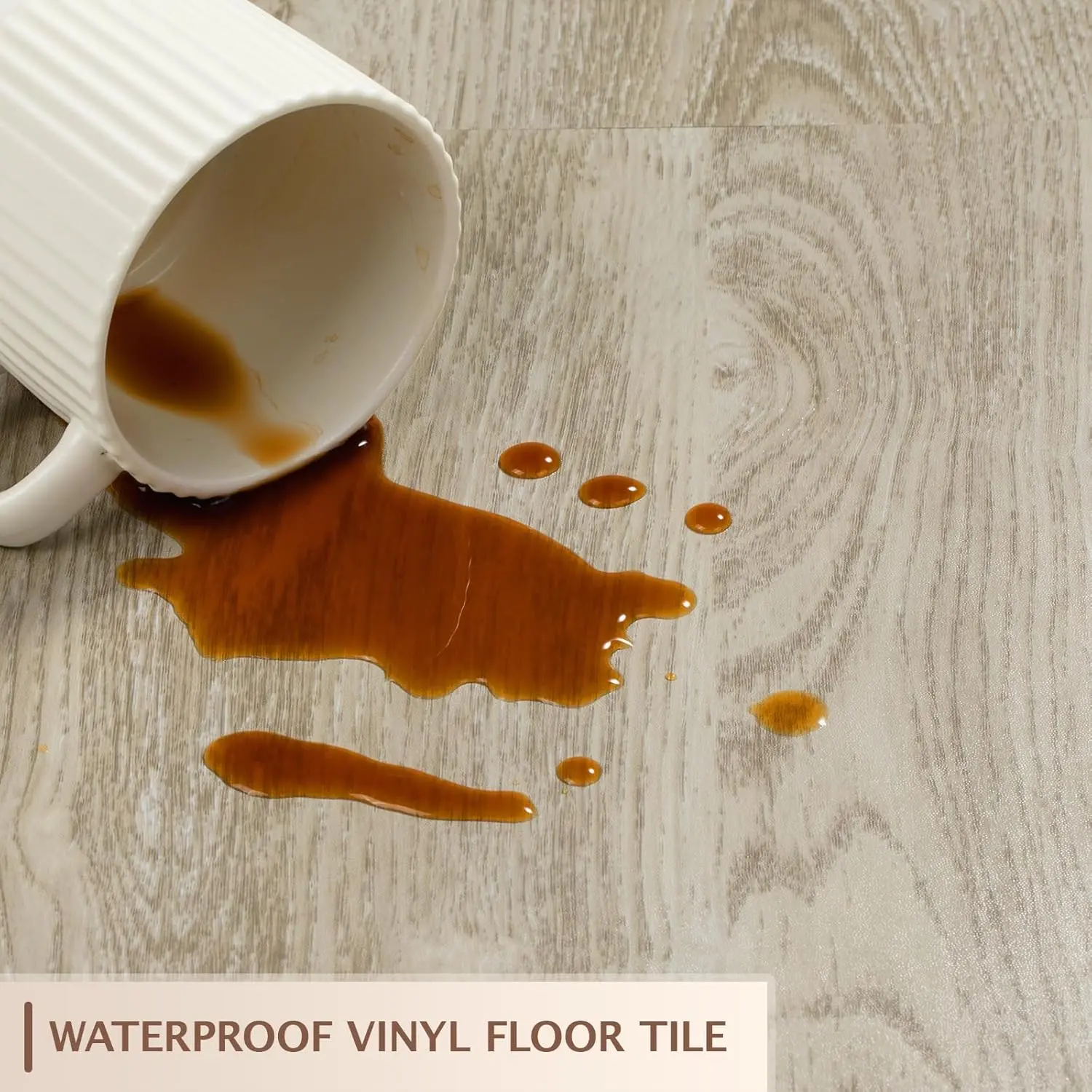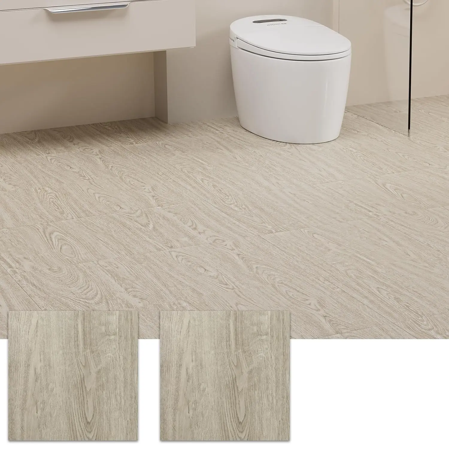 Textured & Versatile: Available in popular wood look and marble textures, featuring a natural matte finish that replicates the authentic feel of natural materials.The luxury vinyl tiles seamlessly complements Nordic, modern minimalist, industrial and other trending decor styles, instantly elevating any space's overall aesthetic.Ideal for bathrooms, kitchens, living rooms, bedrooms and beyond.Superior Performance: CE-certified floor tiles are made of premium PVC, fortified with a UV-protective coating and high-density wear-resistant layer.They boast exceptional resistance to wear, scratches, heat and slips, standing up to daily foot traffic, pet activity and furniture scuffs while far outlasting regular ones.The waterproof, easy-clean surface wipes spotless with a damp cloth.Strong Adhesion & DIY Friendly: These peel and stick floor tiles with waterproof adhesive deliver ultra-strong, long-lasting bonding on smooth, clean surfaces and forms a moisture-resistant seal.No messy adhesives or professional tools required-simply peel off the backing, stick and press for a seamless, flawless finish.The tiles cut easily to fit corners, edges or custom layouts, making DIY installation a hazard-free breeze for everyone.Kid & Pet Safe: SGS-validated and made from formaldehyde-free PVC resin, our vinyl flooring contains zero harmful volatile organic compounds (VOCs).It effectively safeguards indoor air quality, providing reliable safety assurance for your household.The hazard-free, cozy surface is perfect for kids and pets to romp and play freely.Affordable & Practical: Adhesive lvt flooring lets you refresh your decor anytime at low cost.Each pack includes 20 pcs of 12x12 inch tiles, covering a total of 20 sq.ft.Actual color may vary slightly from images due to display differenceswe recommend purchasing the full required quantity at once to avoid minor color discrepancies between batches.