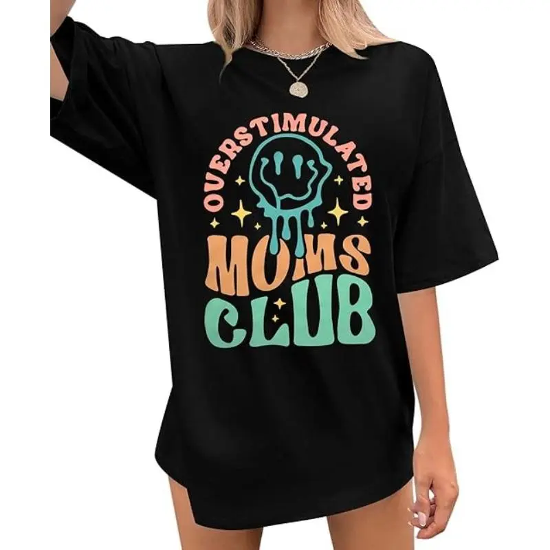 5. Overstimulated Shirt Women Mental Health Awareness T-Shirts Anxiety Tees Oversized Overstimulated Mom Short Sleeve Tops