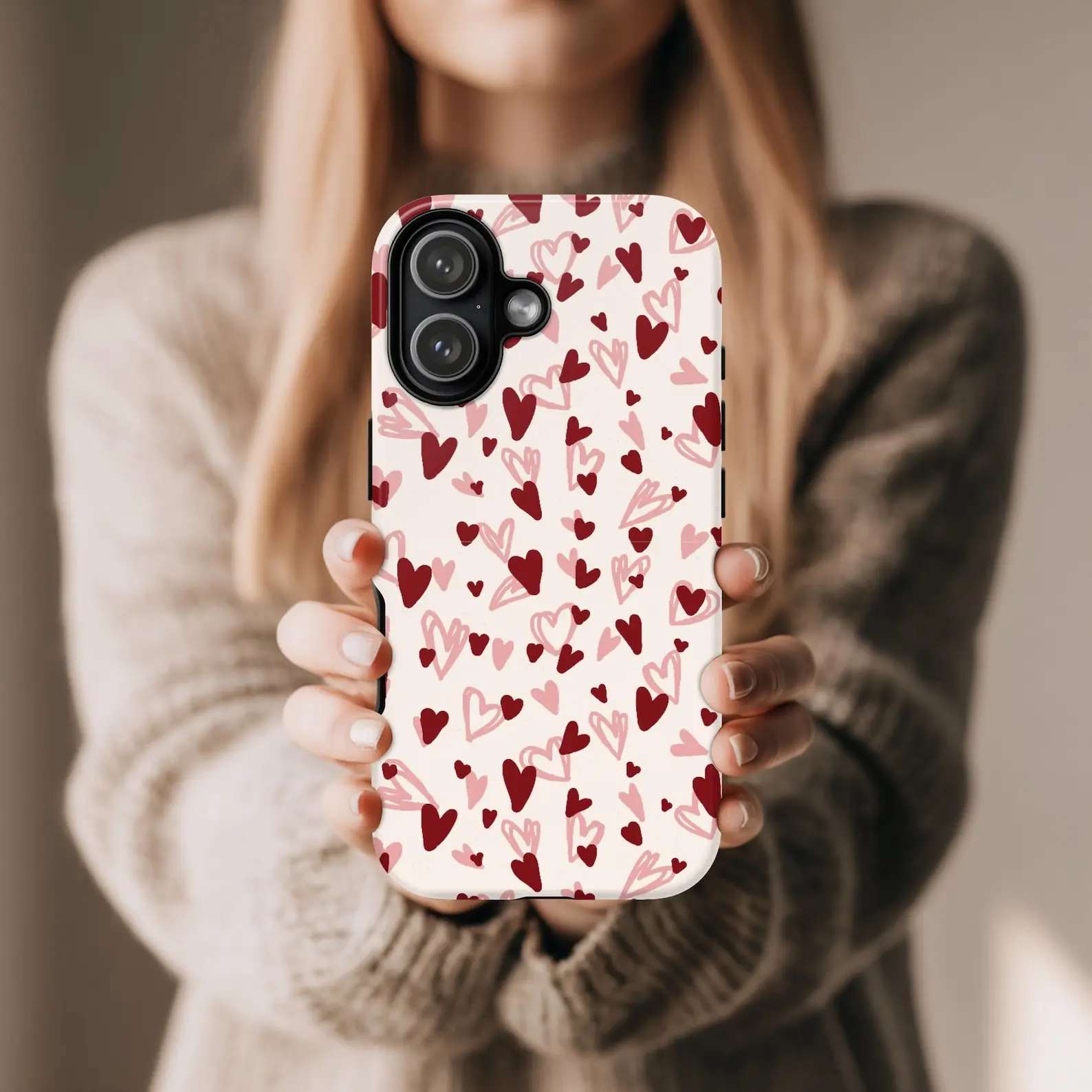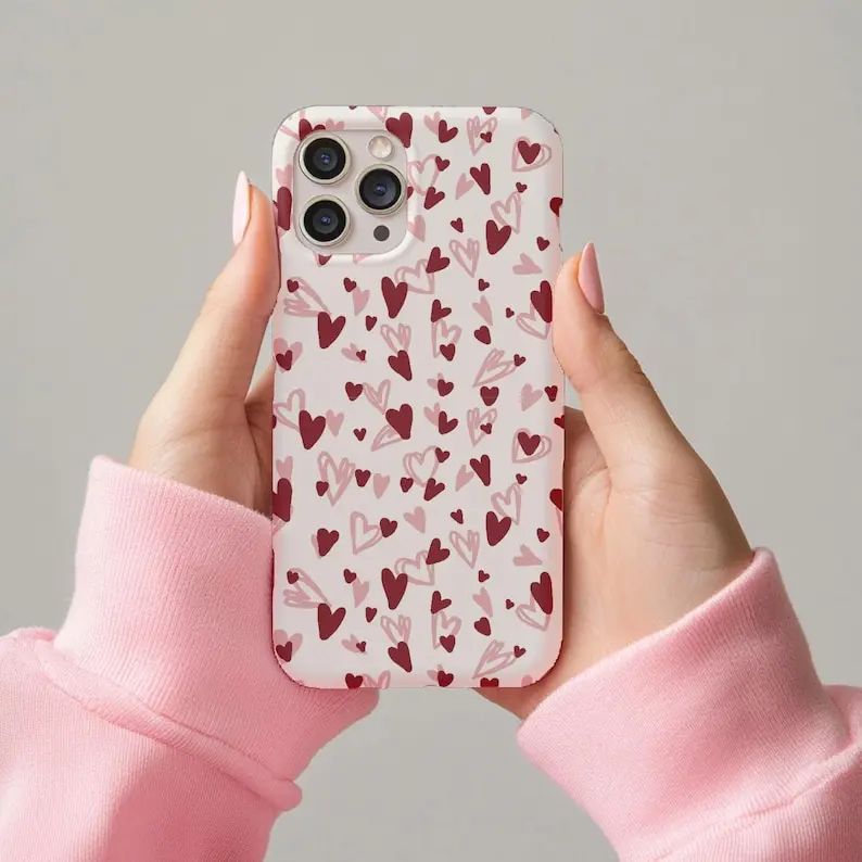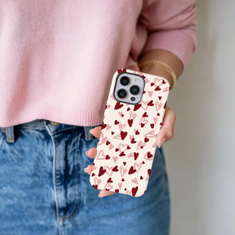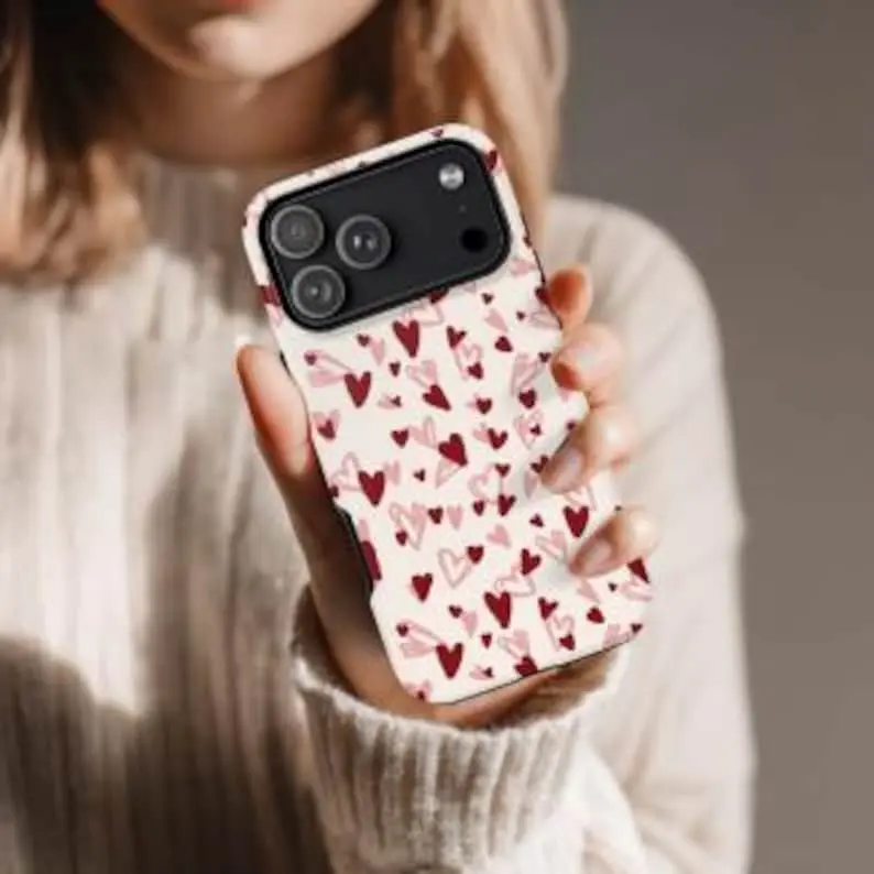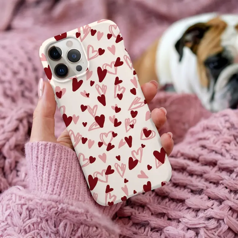Heart iPhone Case Valentines Day Phone Case Cute Pink & Red Hearts Phone Cover Romantic Love Aesthetic Case Gift for Her