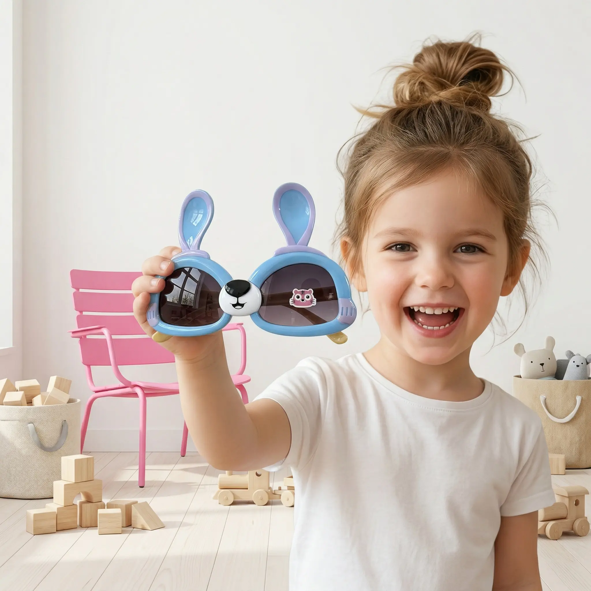 Let Your Little One Shine with These Adorable Bunny Shades! Make every outdoor adventure a photo-worthy moment with our Bunny Ear Toddler Sunglasses. Designed with a playful and whimsical rabbit-ear frame, these shades are a fun way to add personality to your child's summer outfits. Whether it's a day at the beach, a birthday party, or just a stroll in the park, these lightweight and durable glasses are built for active play. The vibrant colors and cute cartoon details make them an instant favorite for kids, ensuring they stay cool and stylish under the sun.