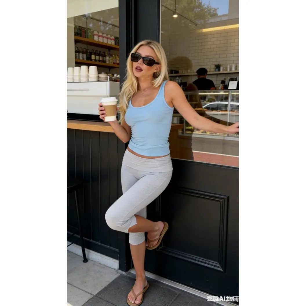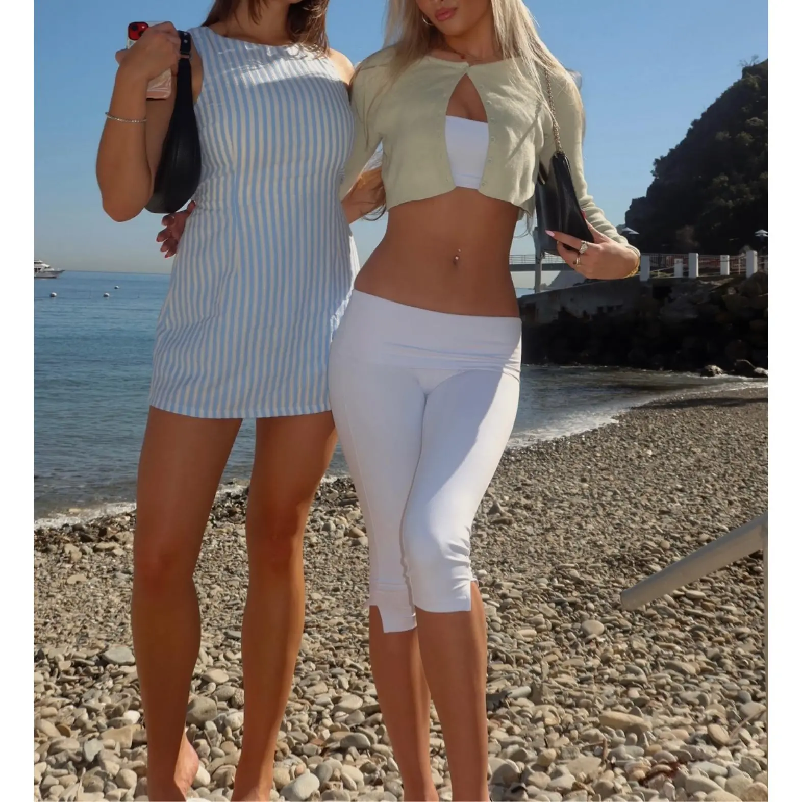 Women’s Split Hem Capri Pants Fold Over Waist Solid ColorFit Cropped Pants Trousers