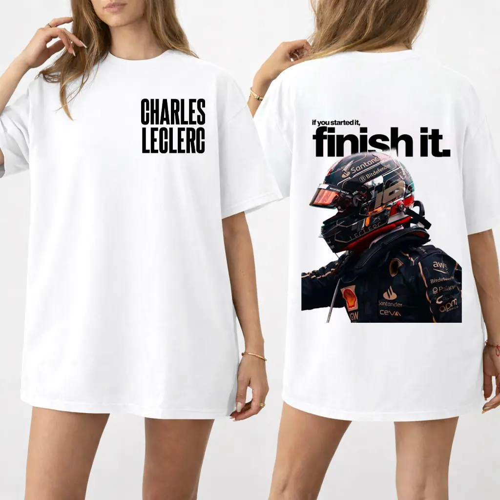 Charles Leclerc Graphic T-Shirt, Finish It Quote Racing Tee, Motorsport Back Print Shirt, Streetwear Driver Outfit, Gift for Racing Fans