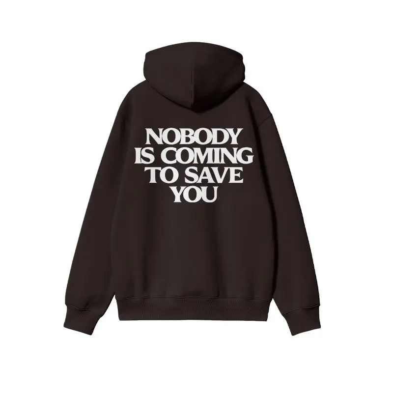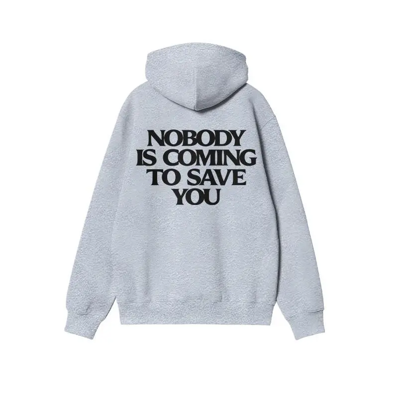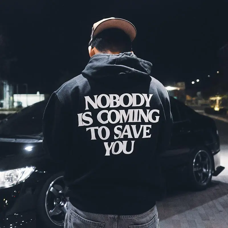 nobody is coming to save you hoodie and t-shirt, bold motivational streetwear pullover for men, black cotton wonderful and simple design