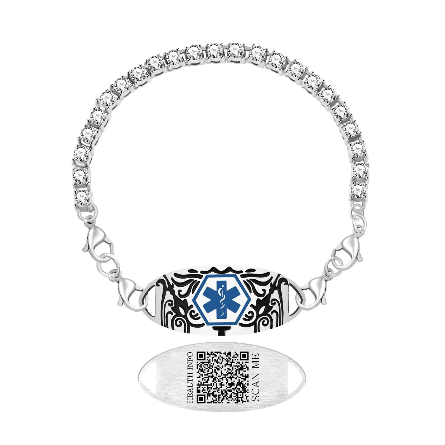 Crafted as a classic tennis bracelet with full rhinestone inlay—sparkling and sleek, with premium bling effect and strong fashion sense. It’s not just a medical ID bracelet, but a stylish daily jewelry piece for all occasions.