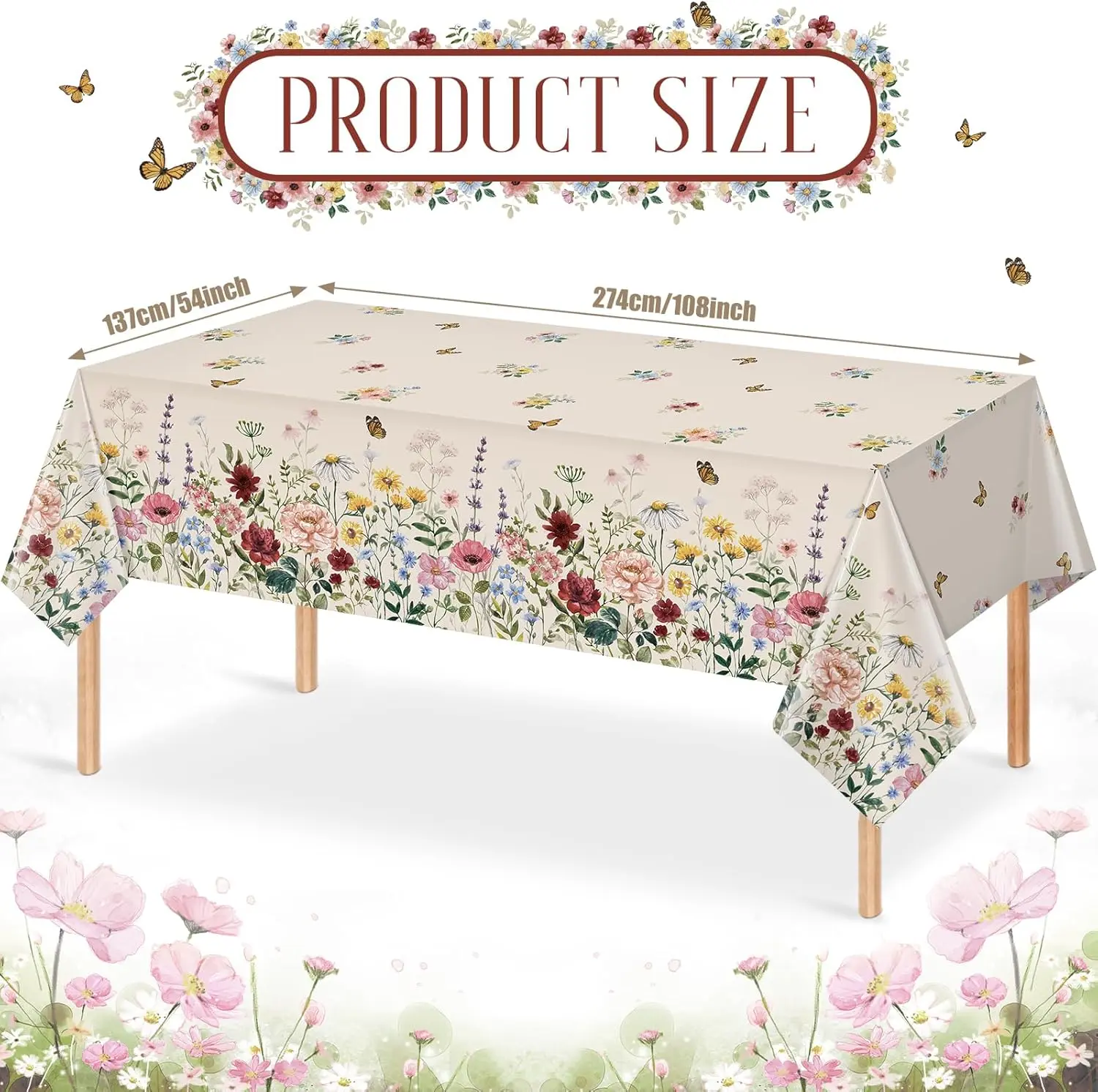·Spring Design: the wildflower and butterfly table cloth are designed with various colors wildflower and butterfly ,full of spring atmosphere, make your party more eye-catching and impressive, effortlessly dress up your party with these tablecloths,perfect for weddings, birthdays, spring tea party and Easter party.