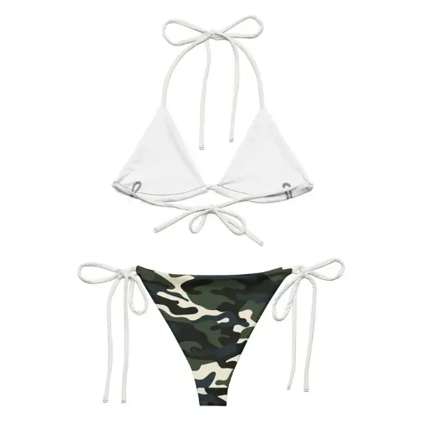 ·Two-piece design with classic triangle bikini top and matching string-tie bottoms