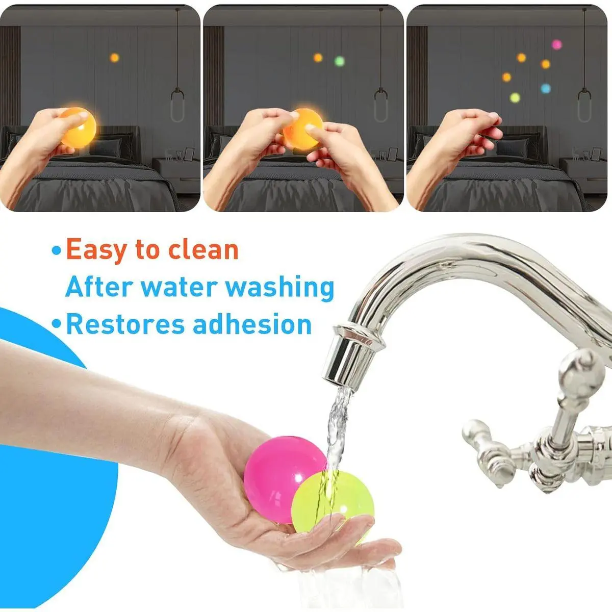 Washable and Reusable: Our sticky stress ball fidget toys are made of high quality material, soft and safe, not easy to break, and easy to clean. After using the sticky balls, the surface will absorb some dust, will be reduced, but will recover after washing. Washable and reusable feature makes fidget ball a preferred choice for valentinesstress balls for adults and sensory toys. As party favors for kids valentines bags stocking stuffers, glow sticky balls leaves an unforgettable keepsake.