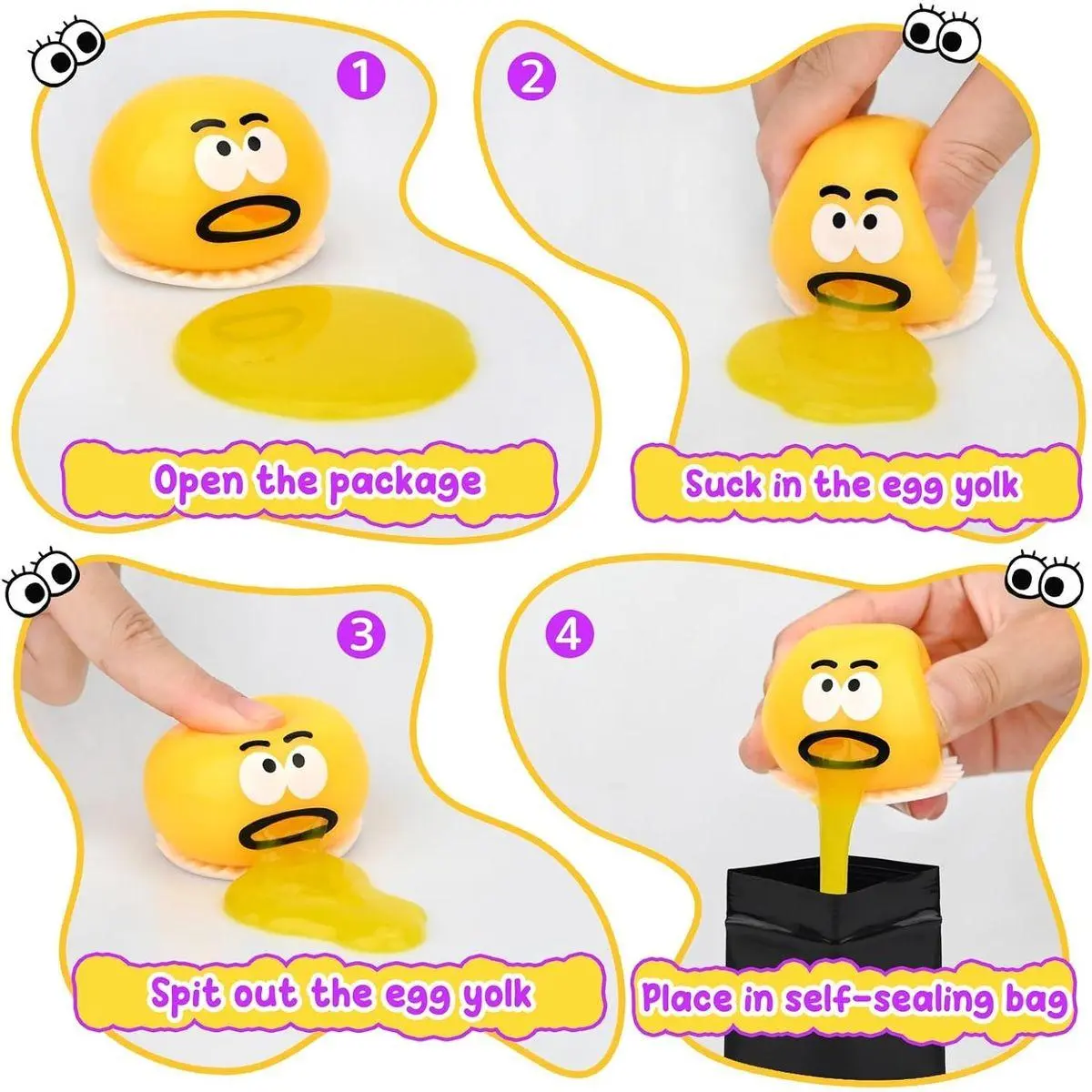 Endless Gross-Out Fun: Get ready to burst into laughter! Squeeze these colorful stress balls and watch the slime egg yolk vomit out, then suck it all back in. This hilarious cycle of puking and sucking creates the most hilarious reactions and is guaranteed to be the life of any party. It's the perfect blend of cute and gross that everyone finds irresistibly funny