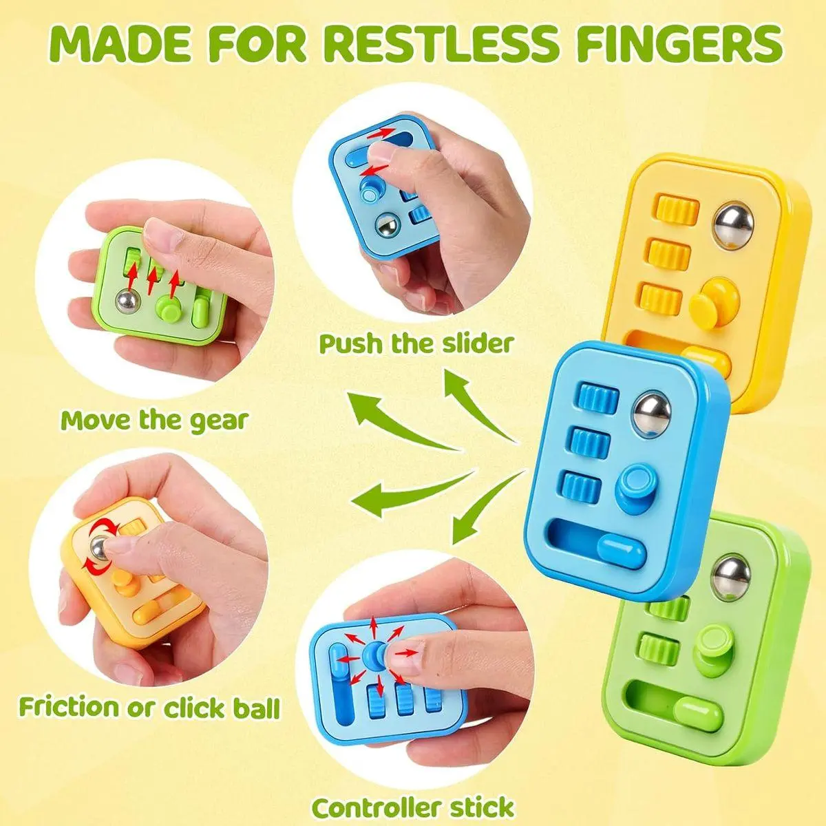 【Multifunctional Quiet & Durable Fidget Gadgets】Made from high-quality ABS plastic, these stress fdget toys are sturdy, smooth, and quiet to use. Each fidge toys combines multiple sensory actions—sliding, rotating, clicking, and rolling—to provide varied sensory input without disturbing others, making them suitable for classrooms and offices.