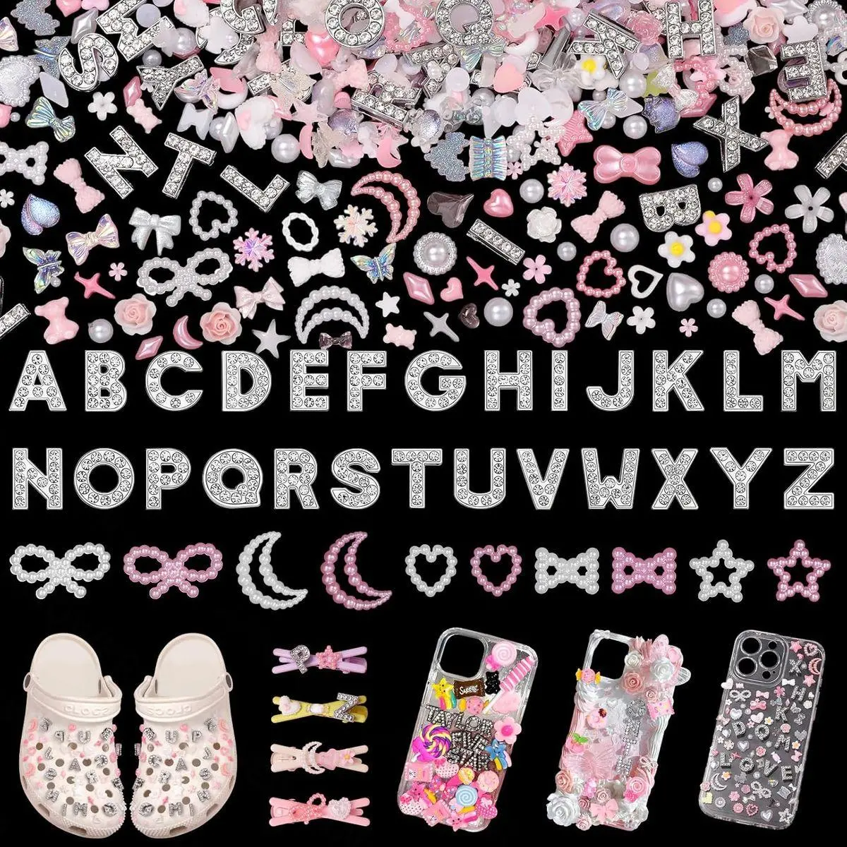 Junk Case Kit: You will receive pink white acrylic charms and silver rhinestones letters charms in the package. Plenty of junk case charms with floral, bows, pearls heart, moon, star charms etc.. Combine letters to personalize your accessories for unique bracelet making, jewelry crafting, scrapbook