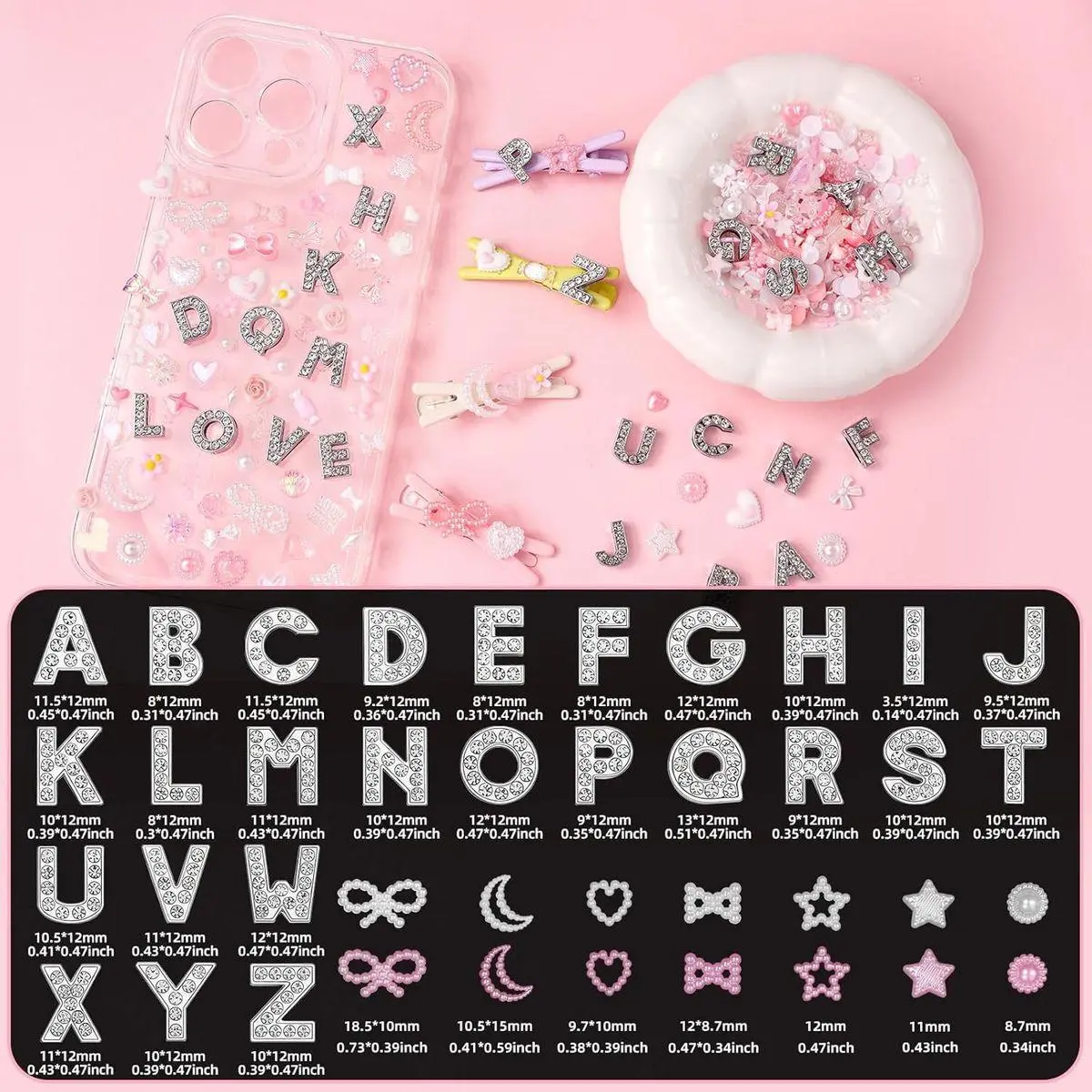 Rhinestone Letter Charms: This set includes 26 sparkling rhinestone letters. Each letter charm features rhinestones set in a durable alloy base, providing a luxurious sparkle and excellent durability for long-lasting beauty in all your handmade crafts