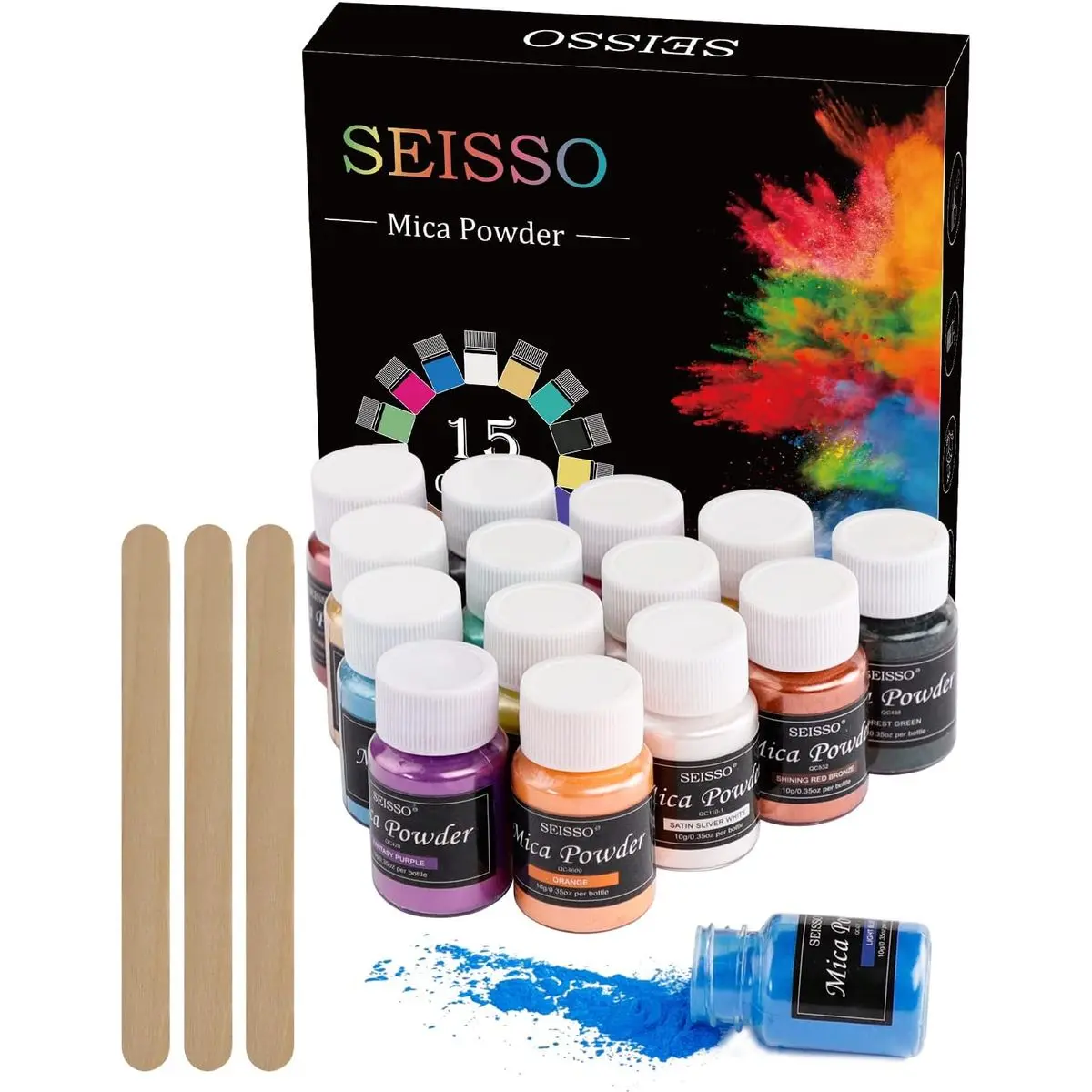 ◆ 15 Colors Mica Powder Set ◆ Multi-color shimmering mica powder, you can randomly match the effect you are satisfied with, which is a finely grinded stone with added pigments for color.*not a toy*