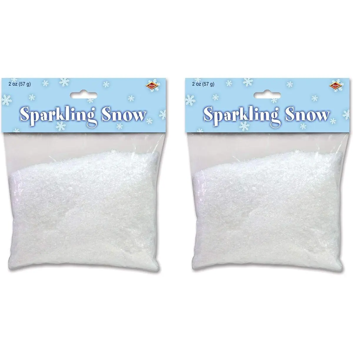 2 OUNCE BAGS: Receive two bags with 2 ounces of snow to provide approximately two generous handfuls for layering tabletops displays and craft scenes