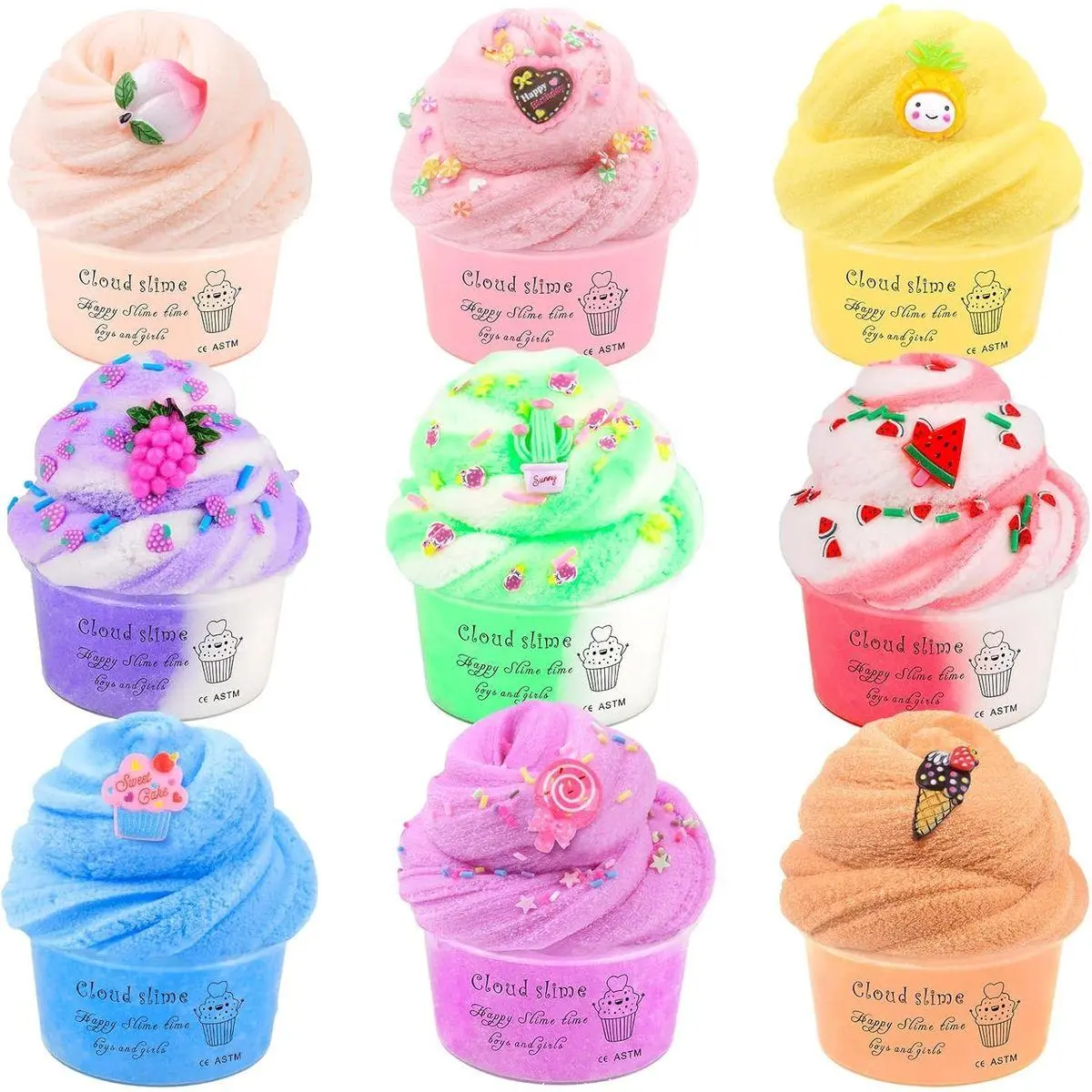 Cloud Slime: Contains 9 Slimes In 3 Different Dual Colors, Pink Green Bule Slime, Volume of 9x45ml, With 9 Cute Slime Accessories, Peach Rainbow Lemon Coffee, Etc, Mucus Have Enough Supplies. Easy for Children to Play.