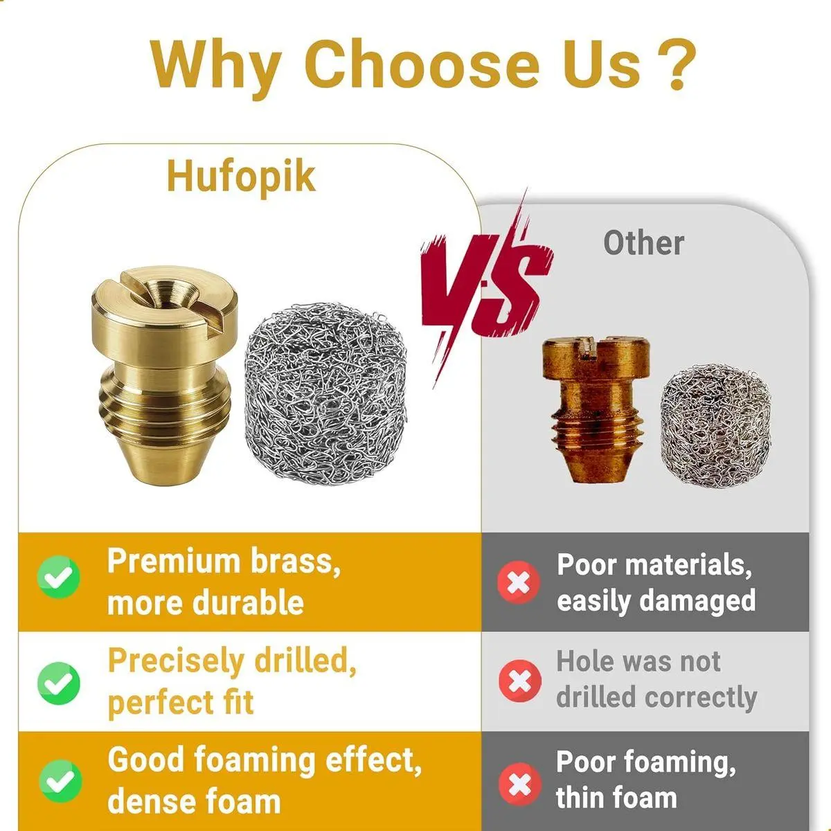 Include 2 pieces of high replacement foam generator nozzles for snow foam lance. Made of brass, work durably in the foam cannon.