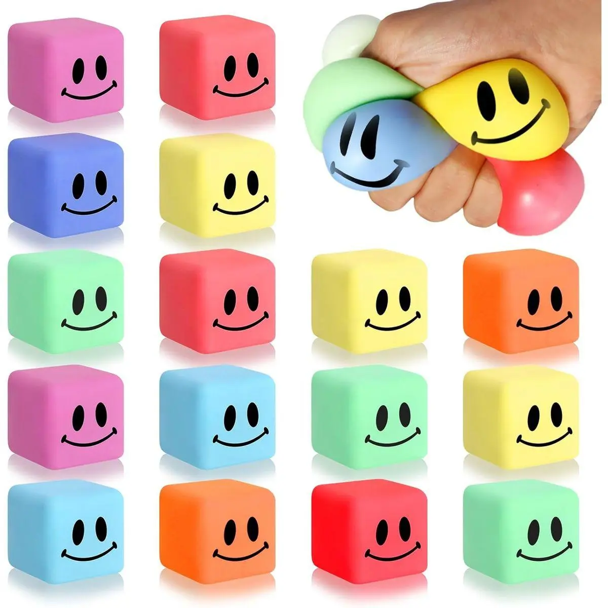 【16 Pack Face Stress Cube】Our fidget stress cube set includes 16 colorful cubes.The slow rising stress cube is designed smile face, feature smiling facial expressions that will brighten up your day and boost your mood