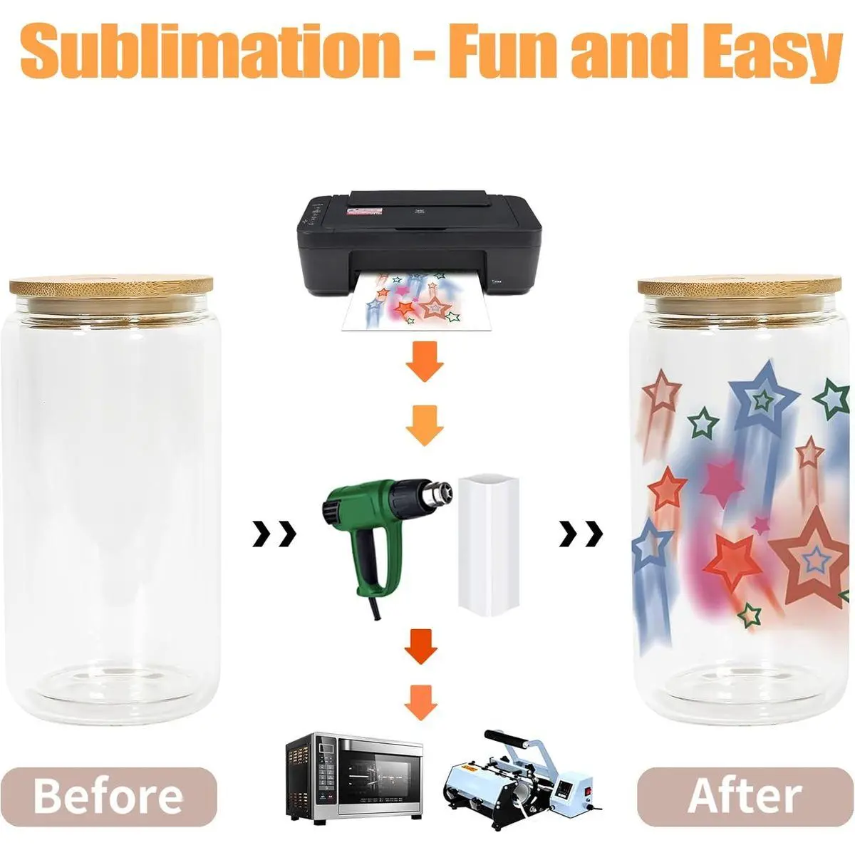 SUBLIMATION GLASS BLANKS: Sublimation snowglobe glass tumbler body is coated with premium sublimation coate, you can sublimate by a convection oven or tumbler heat press machine to get a unique sublimation glass cup, the printing is bright and not blurred, the details are clear and not faded, you can design any image you want. Enjoy DIY fun!