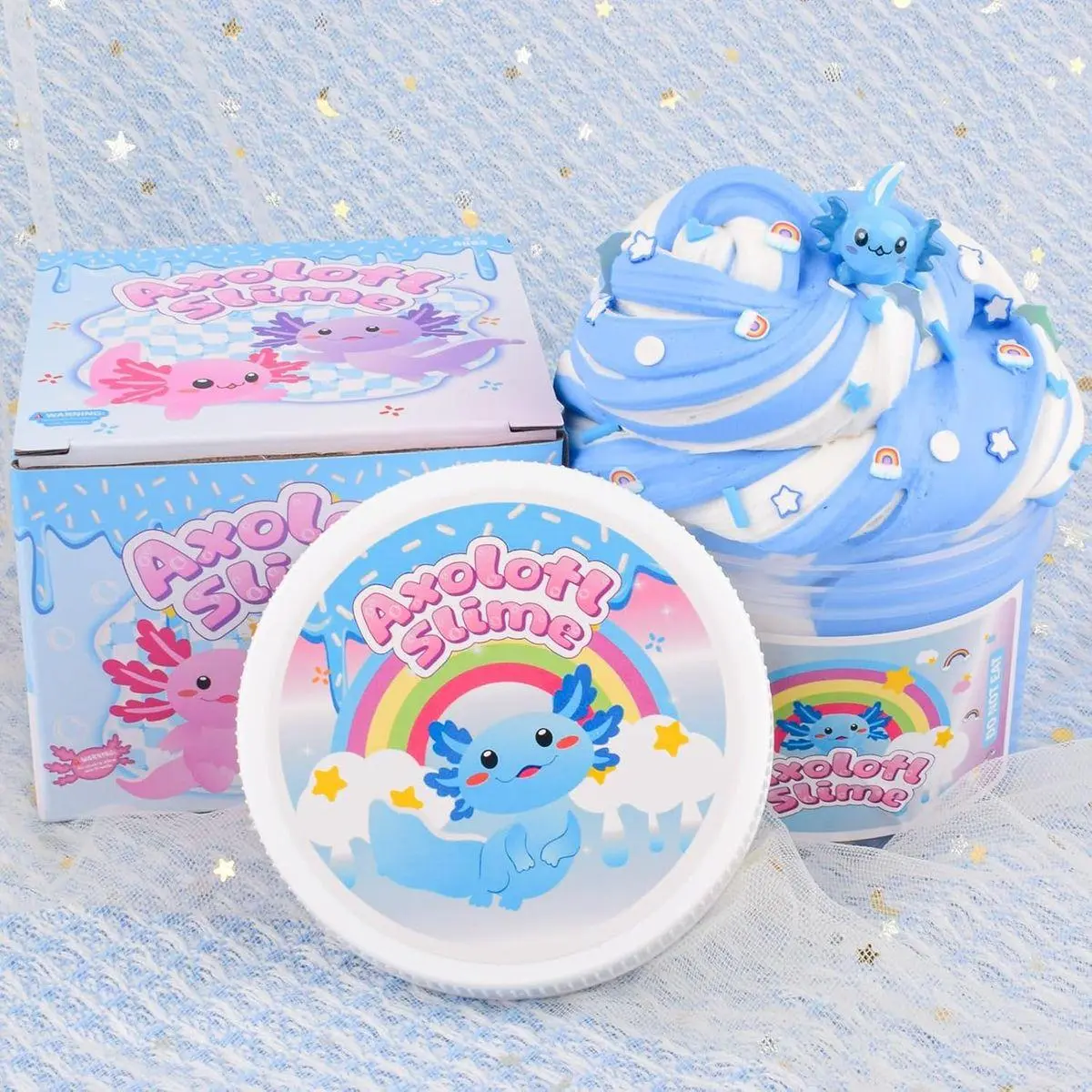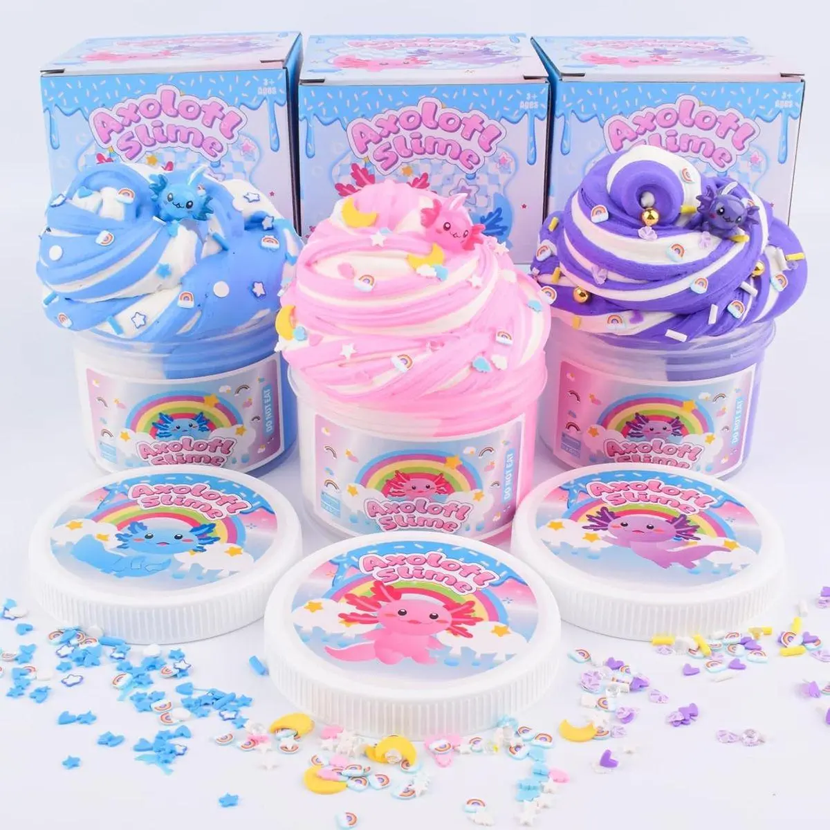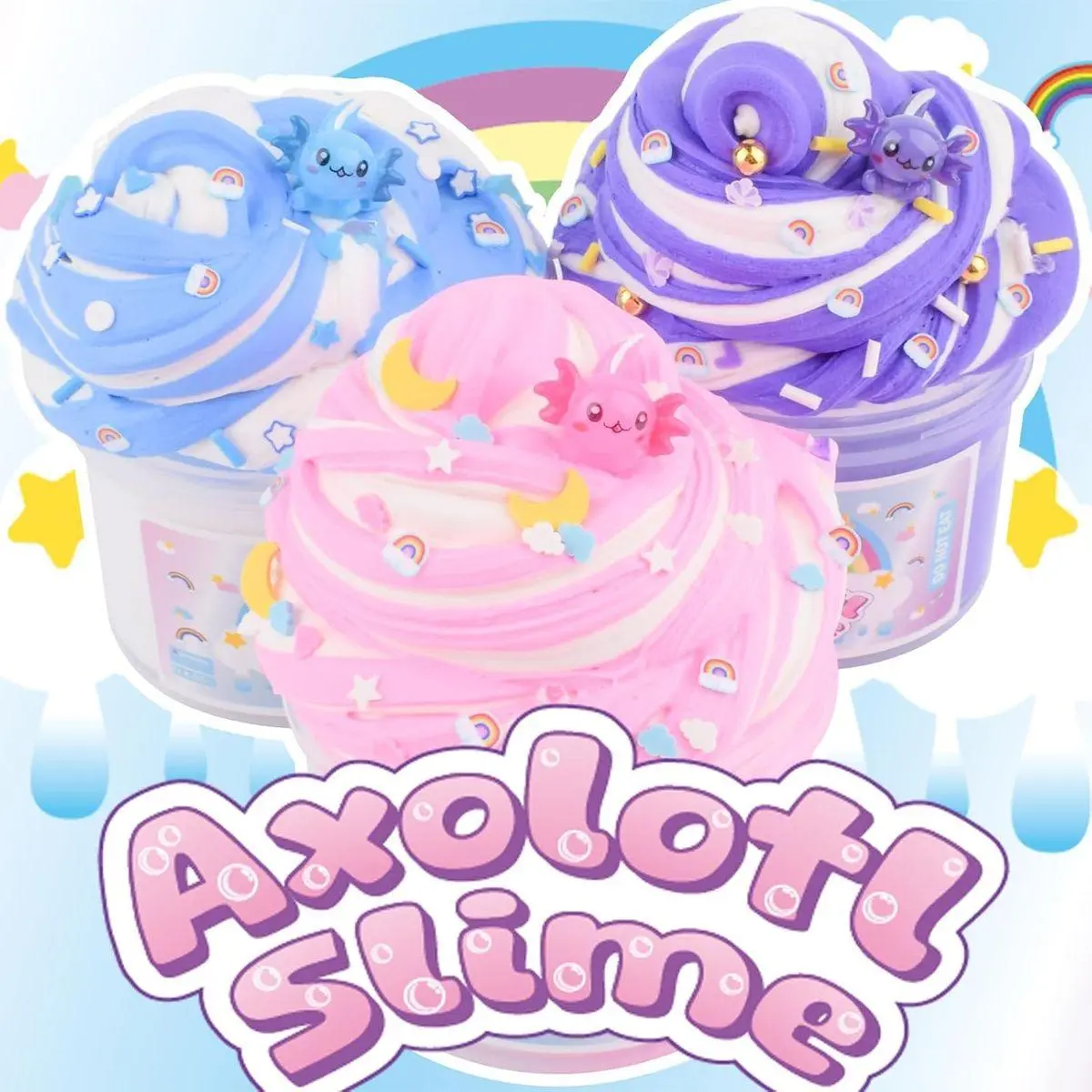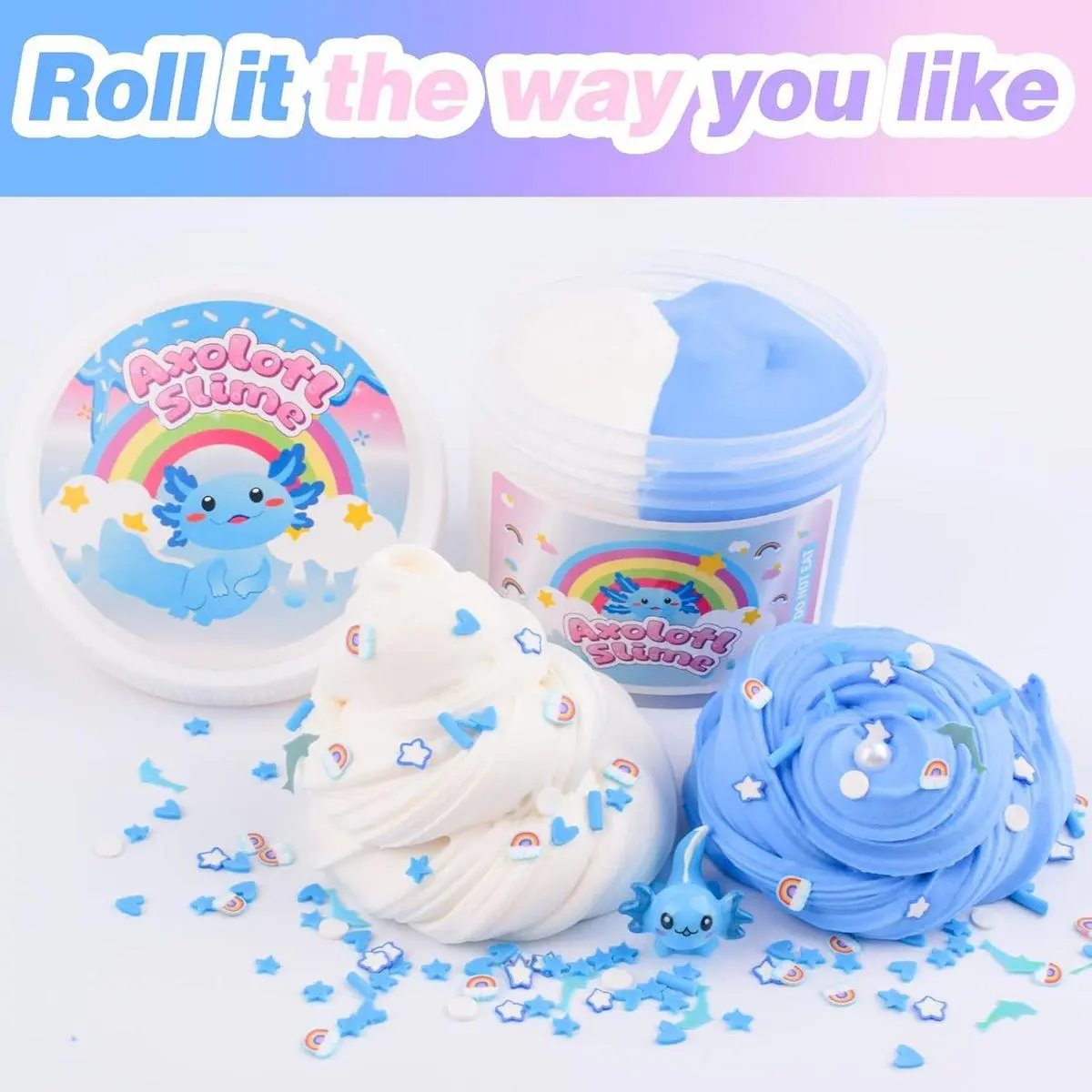🎨 DIY KIDS SLIME: Blue axolotl slime charm and rainbow slices, and you can freely combine your exclusive colors and textures! Cultivate children's hands-on ability and creative imagination to make unique and personalized slime! Hours of creative play, a slime lover's favourite
