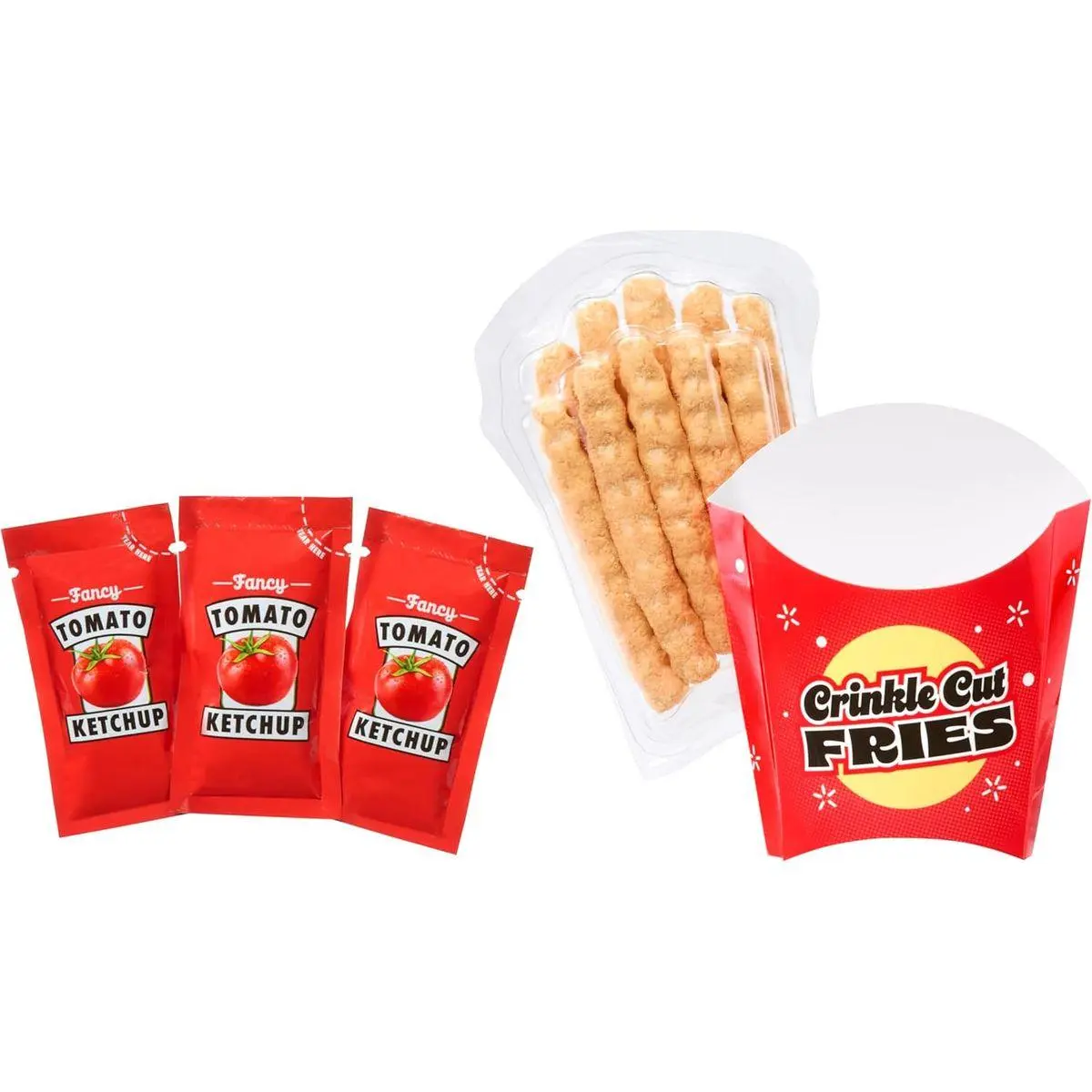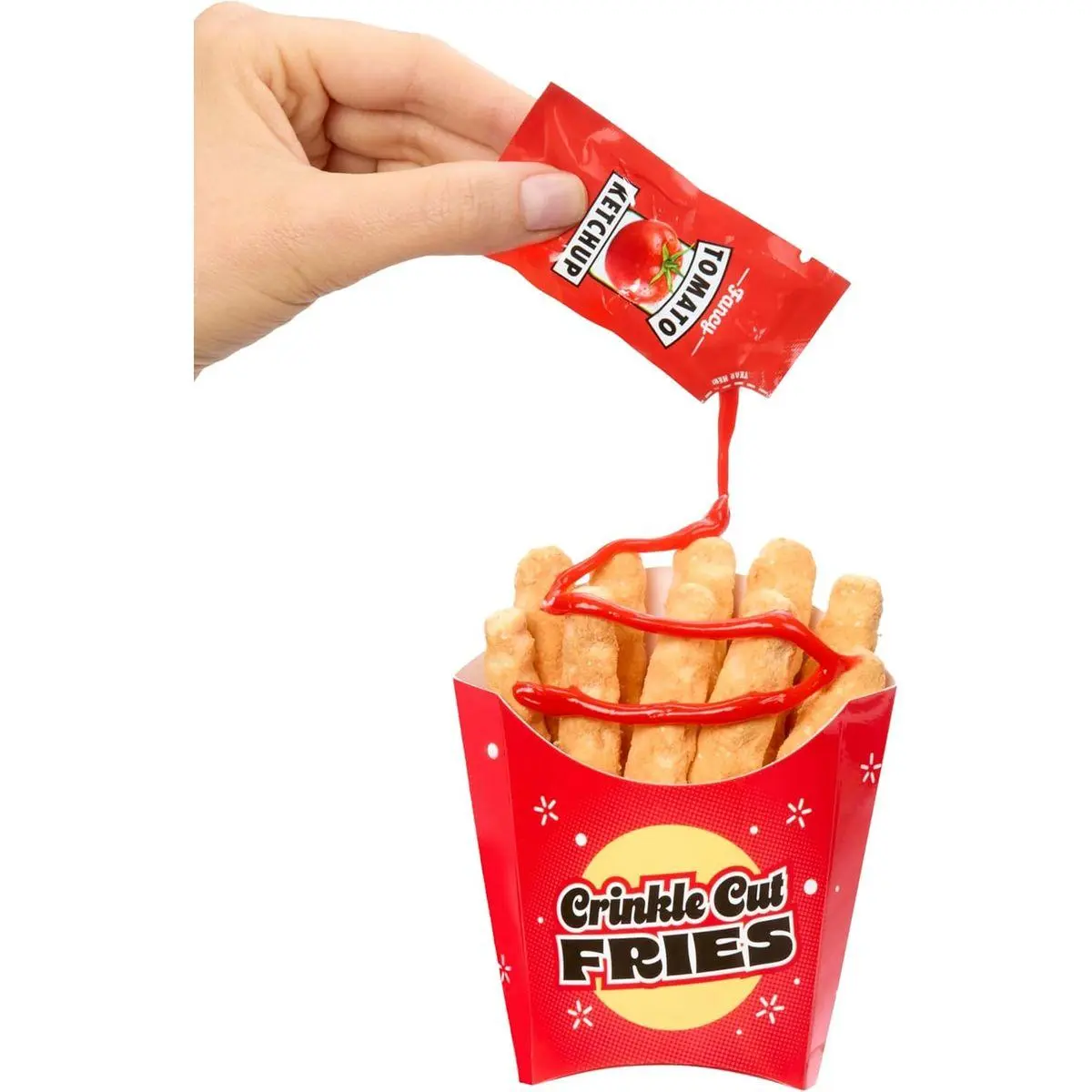 French Fries: Order up! Dip your smashable fries in glossy ketchup!