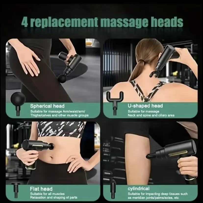 This portable, handheld device is perfect for muscle massage. It comes with replacement heads, ensuring versatility and longevity. Ideal for on-the-go use, this massage gun is a must-have for muscle relief. #GLOBAL PICKS