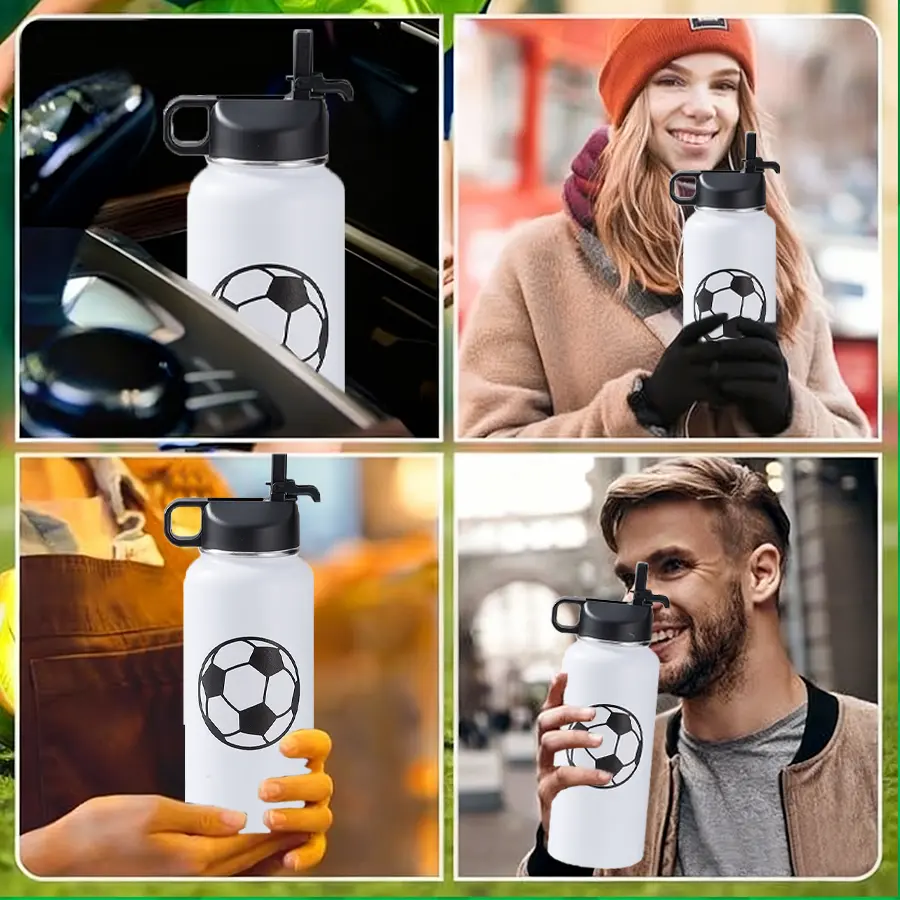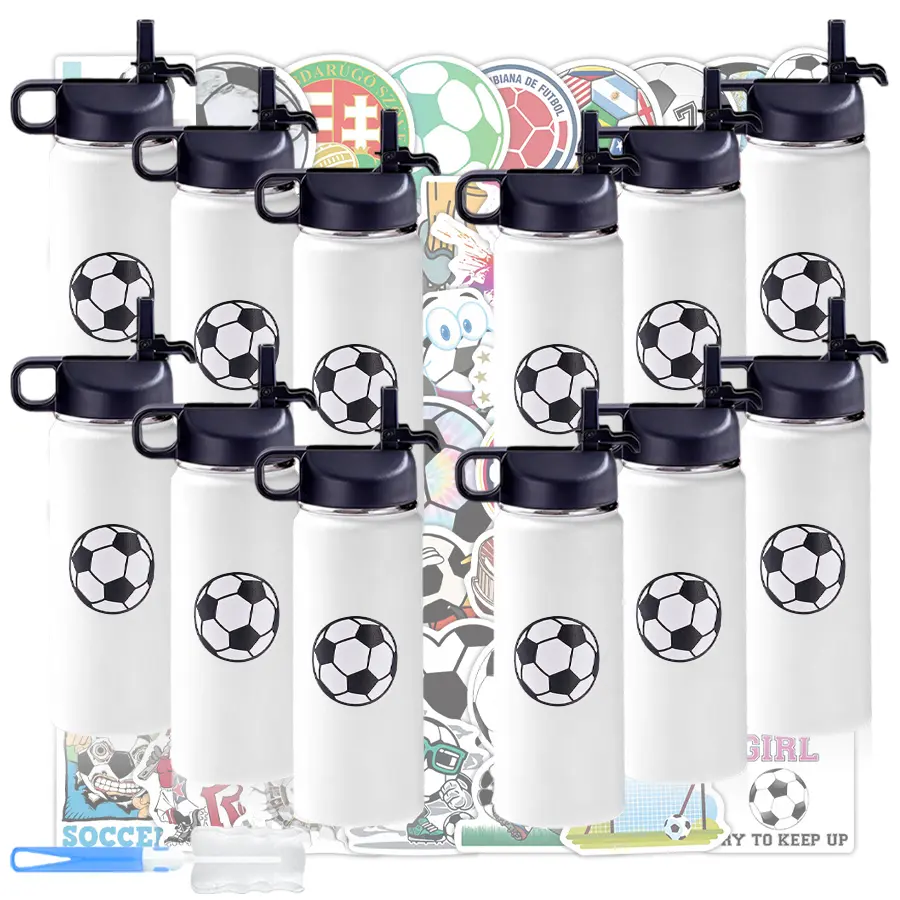 12 pcs 32 oz reusable stainless steel cups, indoor soccer cups for iced coffee, hot and cold beverages and juices, perfect for soccer games, graduation events and daily hydration must-haves, perfect gift for mother's day, graduation season